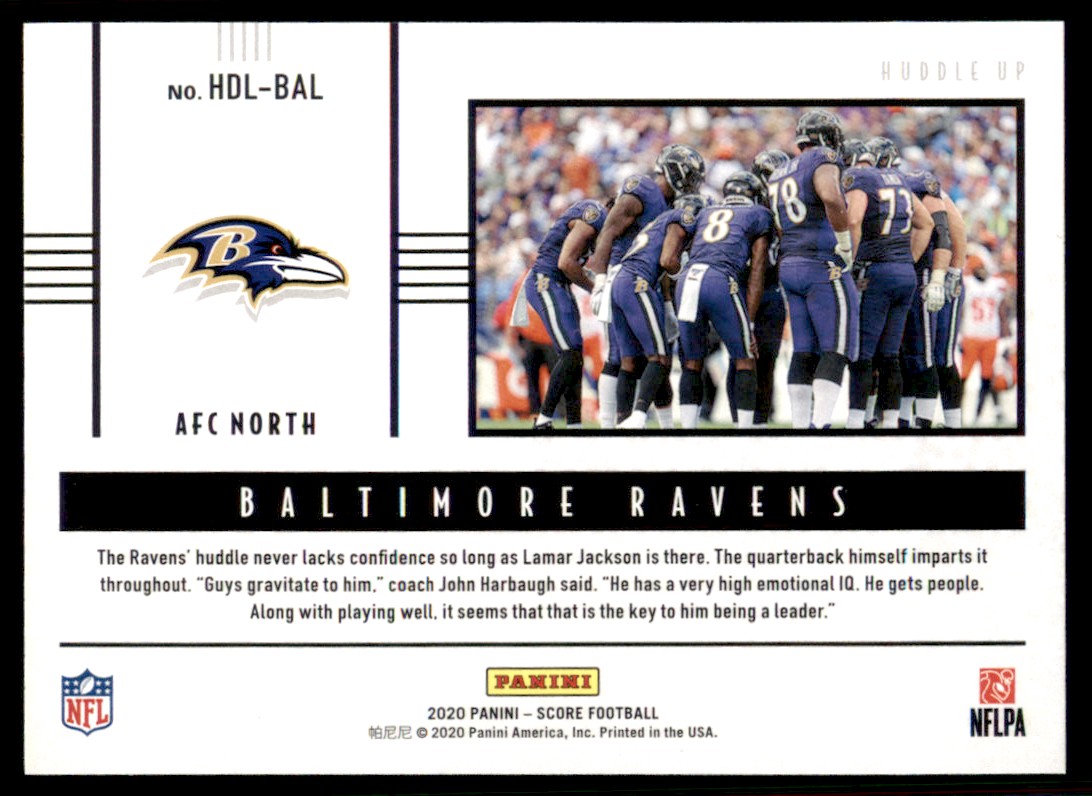 2020 Score Huddle Up #HDL-BAL Lamar Jackson team Baltimore Ravens