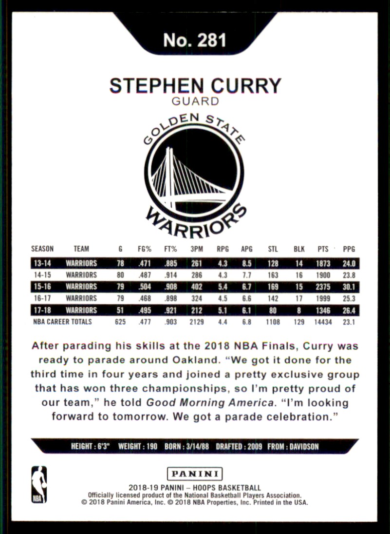 2018-19 NBA Hoops Winter #281 Stephen Curry Golden State Warriors