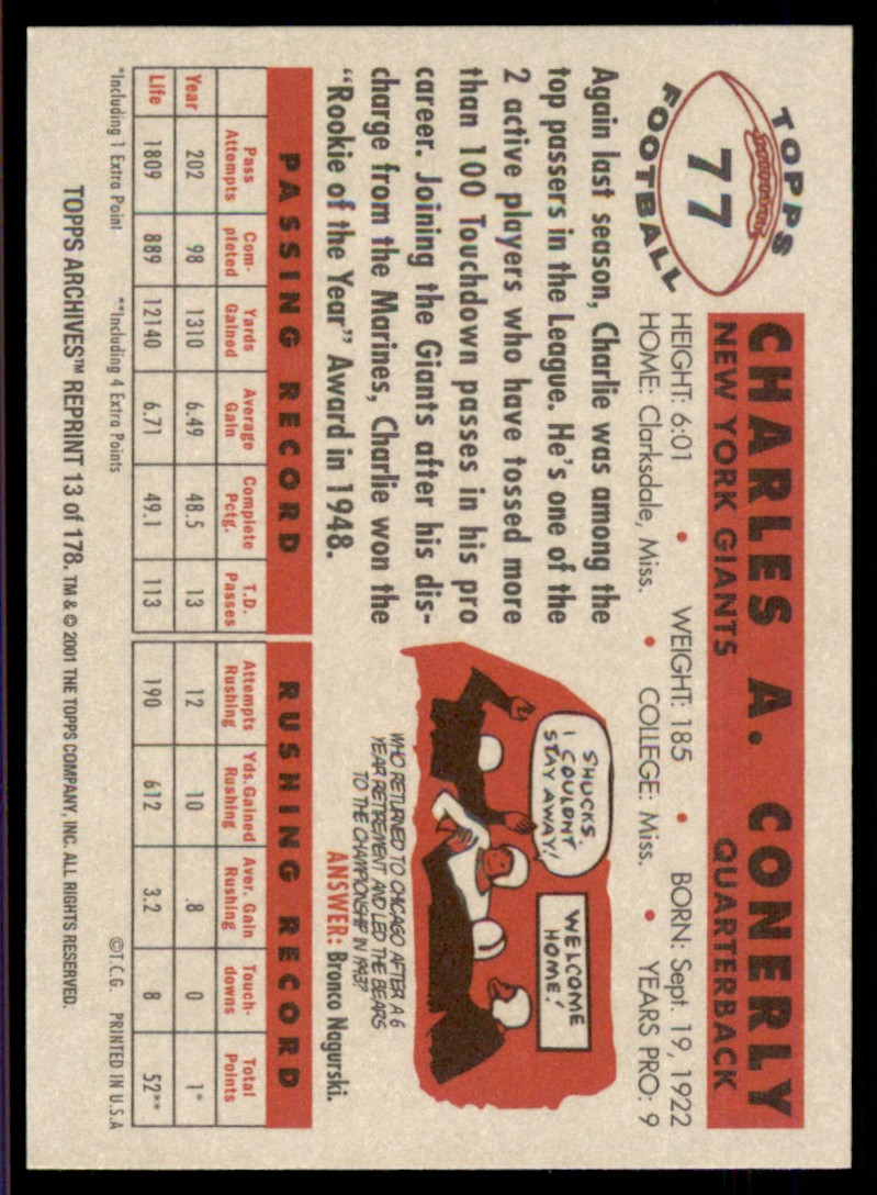 2001 Topps Archives #13 Charley Conerly New York Giants