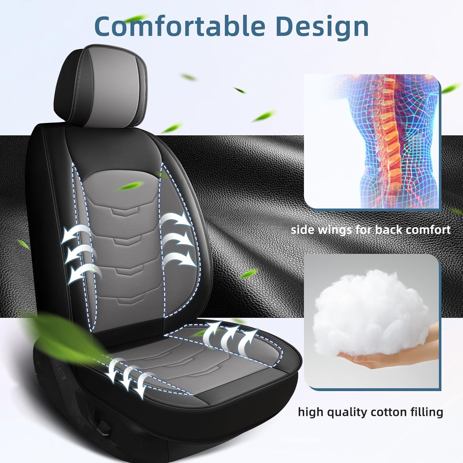 ❤ Material: Premium faux leather is durable, breathable, comfortable and has good waterproof. The interior of the seat cover is filled with sponge, the appropriate thickness allows you to sit for a long time without getting tired.