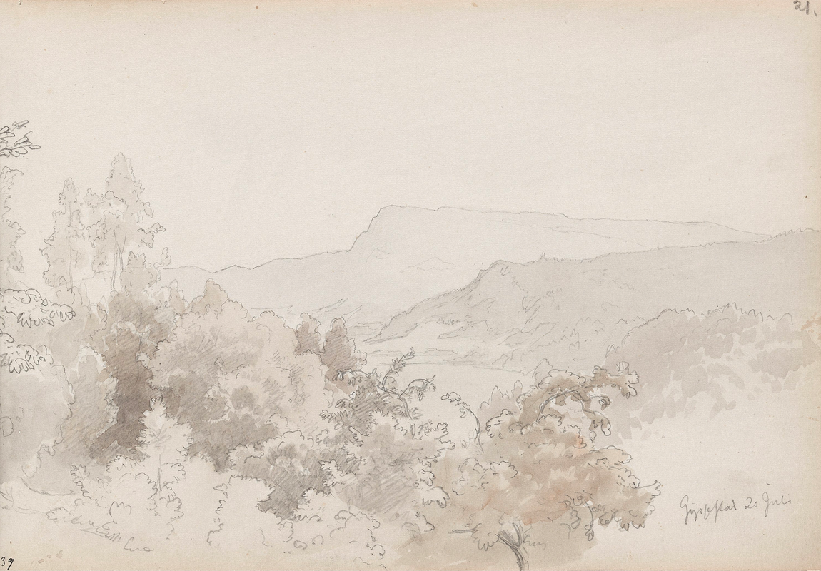 Layered Hillside View – This peaceful pencil and wash drawing captures a gently rolling landscape of forested hills and distant mountain ridges. The delicate gradient of tone creates soft depth, allowing your eye to move across layers of natural form and foliage. A quietly immersive scene that invites moments of reflection and calm.