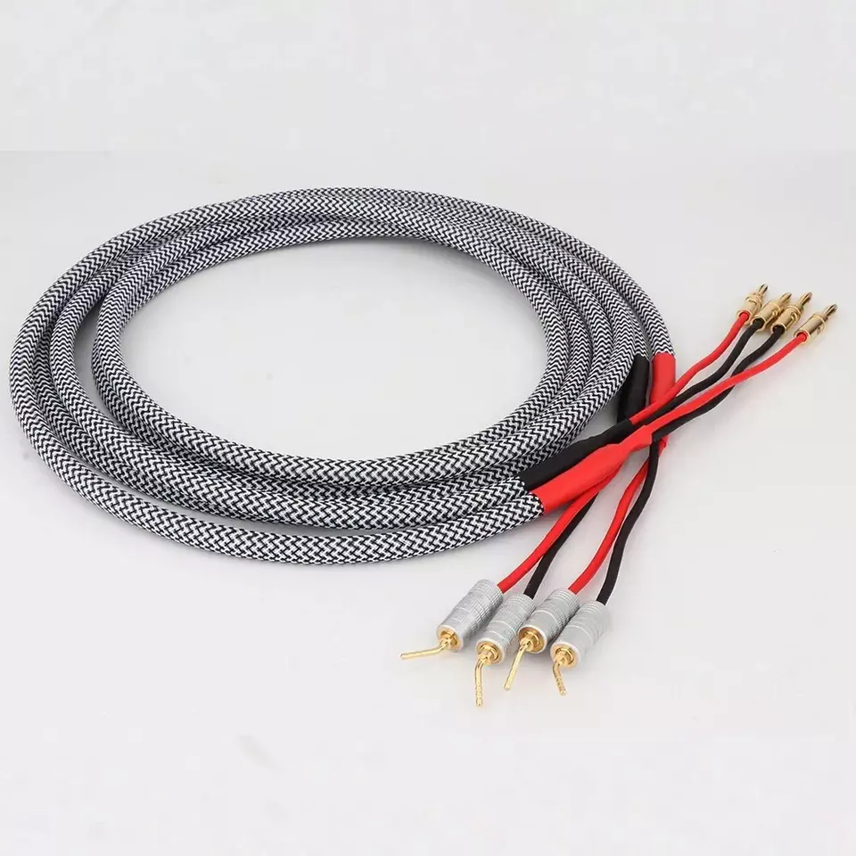Pair 4N OFC HiFi Audio LoudSpeaker Cable and HiFI Banana plug for Amp DVD player