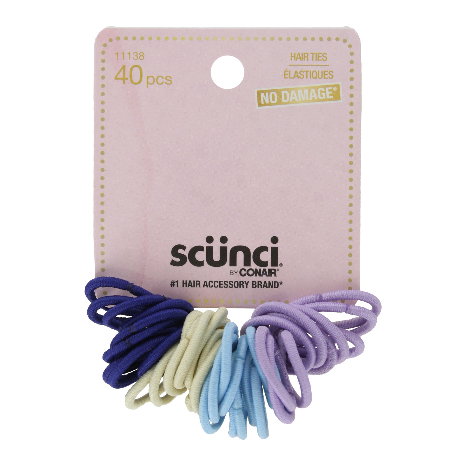 Keep your hair secure and stylish with the Scunci No Damage Hair Ties. This 40-piece set features soft and stretchy elastics in a beautiful assortment of pastel colors, perfect for everyday wear. Designed to provide a strong hold without damaging your hair, these elastics are gentle enough for daily use yet durable enough to maintain their shape. Whether you're pulling your hair into a ponytail, bun, or braid, these no-damage hair ties ensure a secure and comfortable hold. With a variety of pastel shades, these hair ties are both functional and fashionable, blending seamlessly with any hair color or outfit.