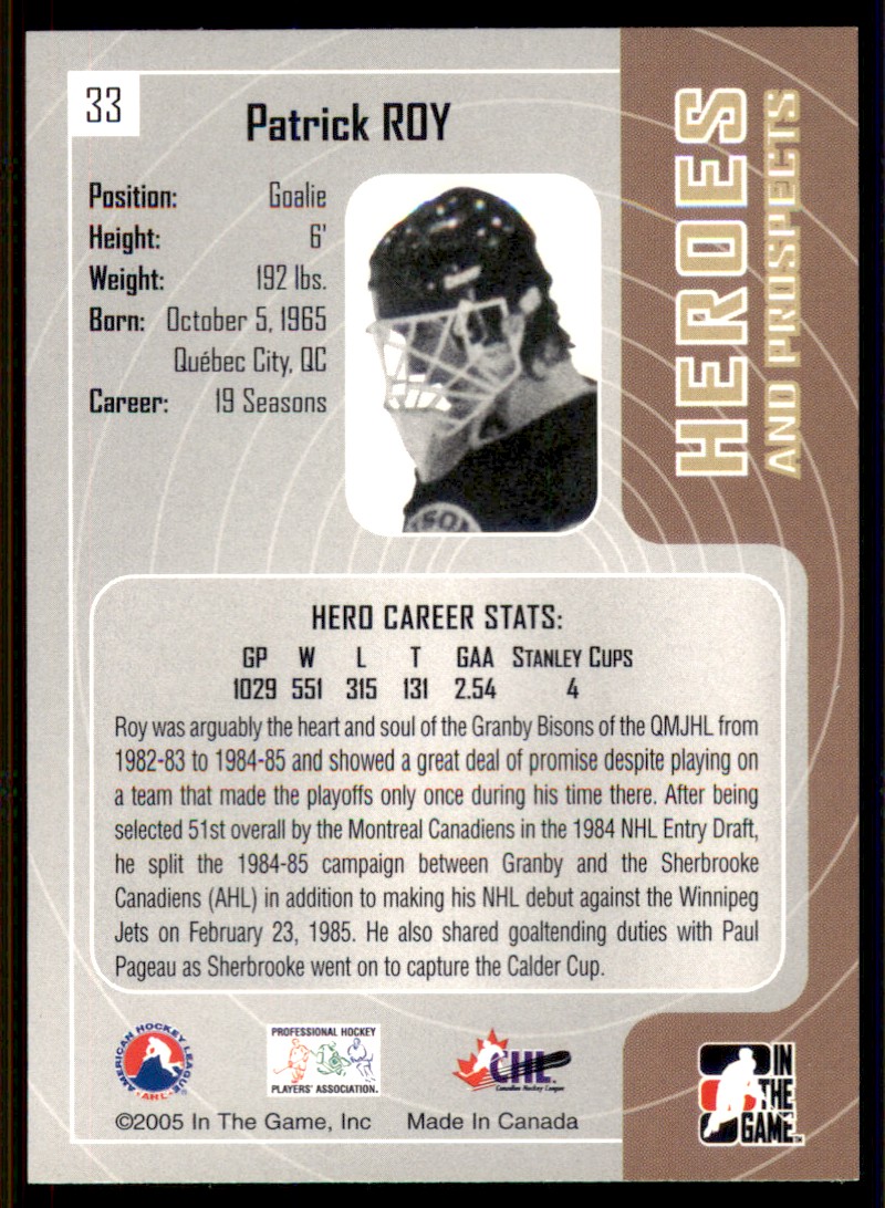 2005-06 In the Game Heroes & Prospects #33 Patrick Roy Montreal Canadiens