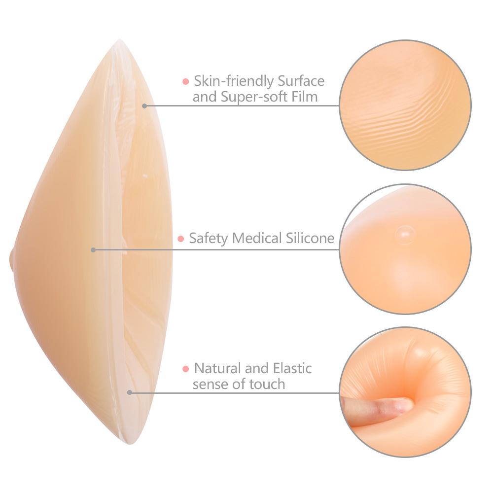 MATERIAL: 100% medical grade silicone, skin-friendly, super soft, comfortable like natural breasts.