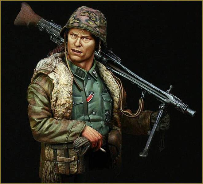 Example #3: 1/35 scale model of a man can have dimensions from 47mm to 52mm, womens 46mm to 50mm.