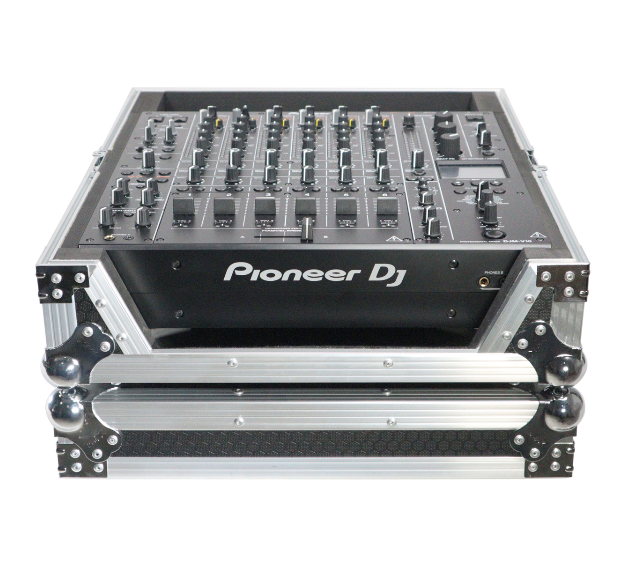 The ProX XS-DJMV10 case allows you to safely house your Pioneer DJMV10 mixer and is made with the highest quality material and workmanship to give you the ultimate security for your controller. If you have a passion for your gear and want to keep it safe at all times, this case will perform at the highest level every time. The XS-DJMV10 is constructed with our rugged signature 3/8" Gig-Ready Series Plywood, durable rubber wheels, reinforced steel ball corners, as well as recessed steel padded handles and latches. There is additional space for cables and small accessories in the back.