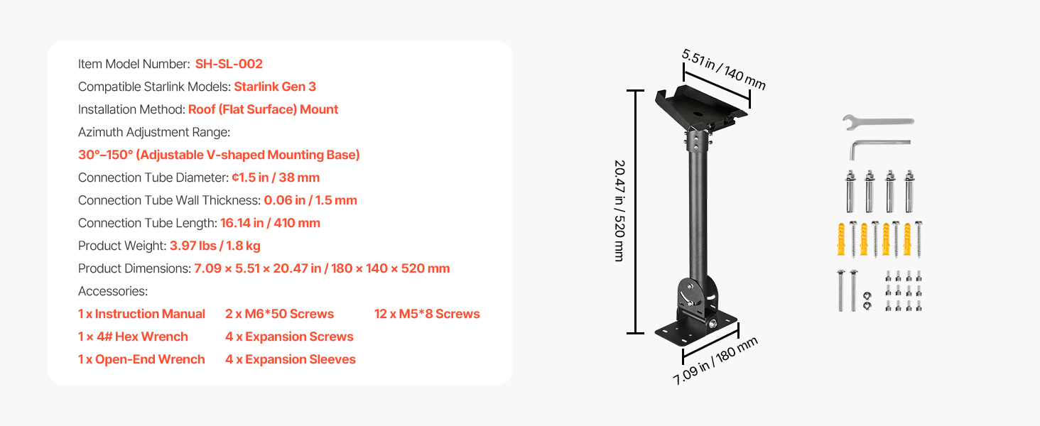 Our starlink mount includes a full set of mounting accessories and a detailed manual. Modular design makes assembly simple—no special tools or skills required.