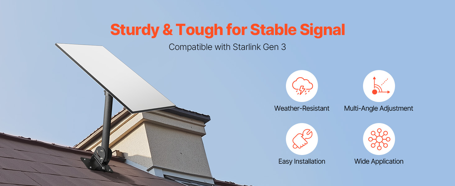 Weather-Resistant Steel Construction: Built with high-strength steel and a reinforced 0.06 in / 1.5 mm thickened design, this starlink mount stands strong against wind, rain, and corrosion. Delivers rock-solid stability and long-term durability, effectively resisting deformation and breakage even in harsh outdoor conditions