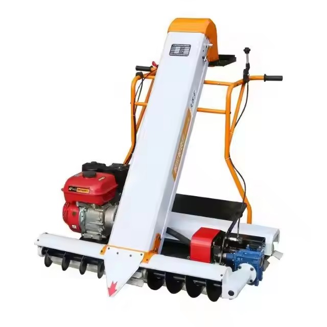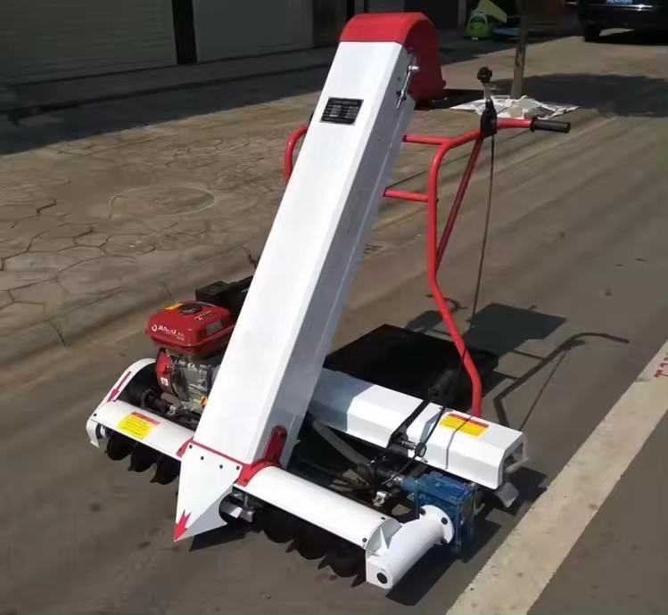 This hand pushing type paddy rice propelling conveyor & bagging machine is mainly used for cleaning and collecting the cereal crops, including paddy rice / wheat / grain / corn / sesame / rape seed etc, after drying under sunshine and bagging it automatically. It consists of power system, main steel frame, auto clutch transmission system, gear box system, spiral propeller collecting system and cleaning system. This machine has advantages of high efficiency, light weight, easy operation, lower fuel consumption and simple maintenance. It is the best helper with max. productivity 6 tons per hour for farmers in rural area.