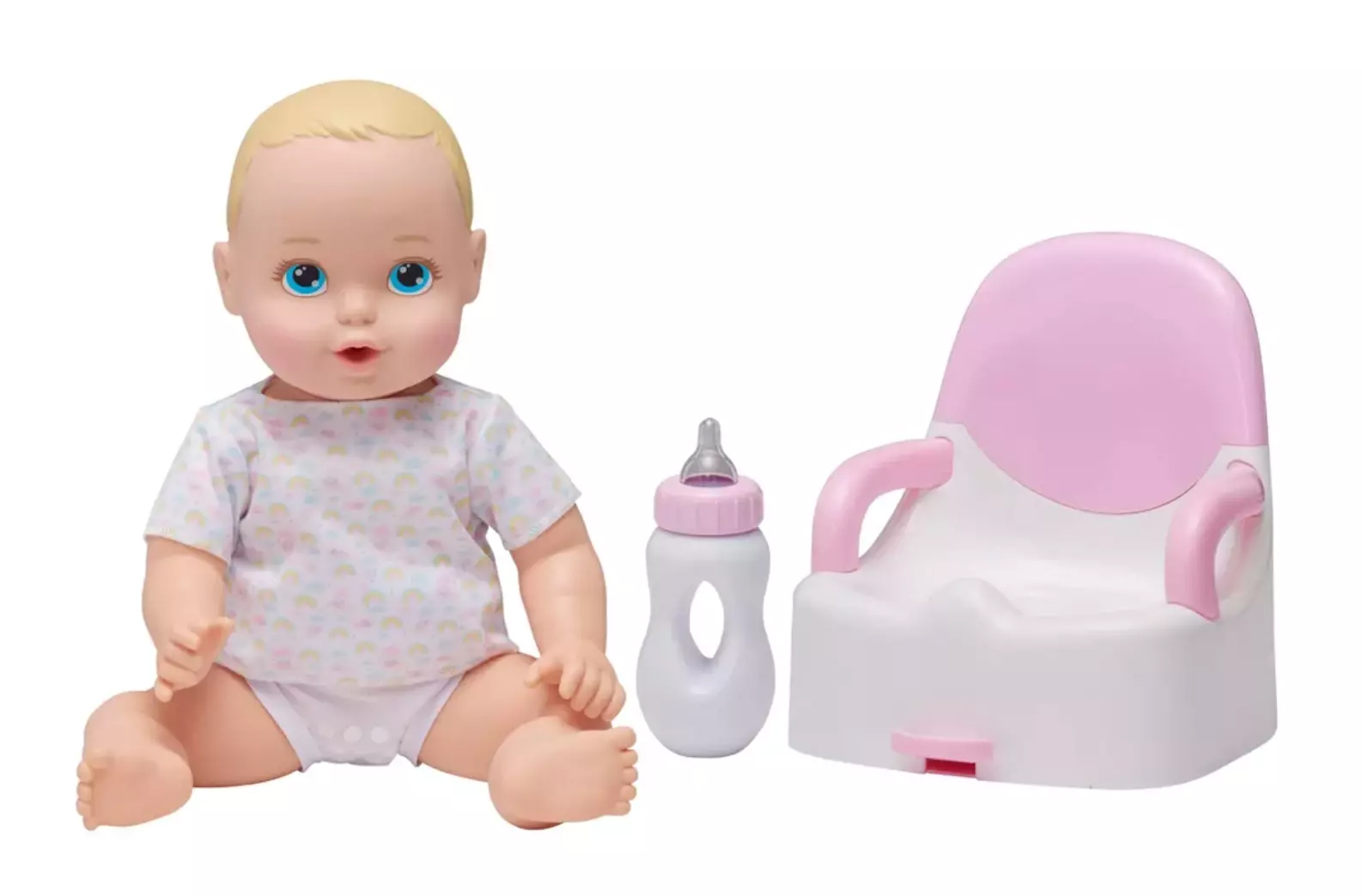 What's Included: Baby doll, outfit, bottle, diaper, potty chair