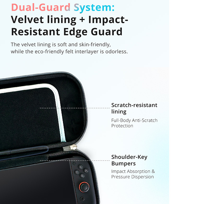 l All PU tough material + skin-friendly feel fabric, stronger resistance to pressure, impact resistance, to avoid bumping failure