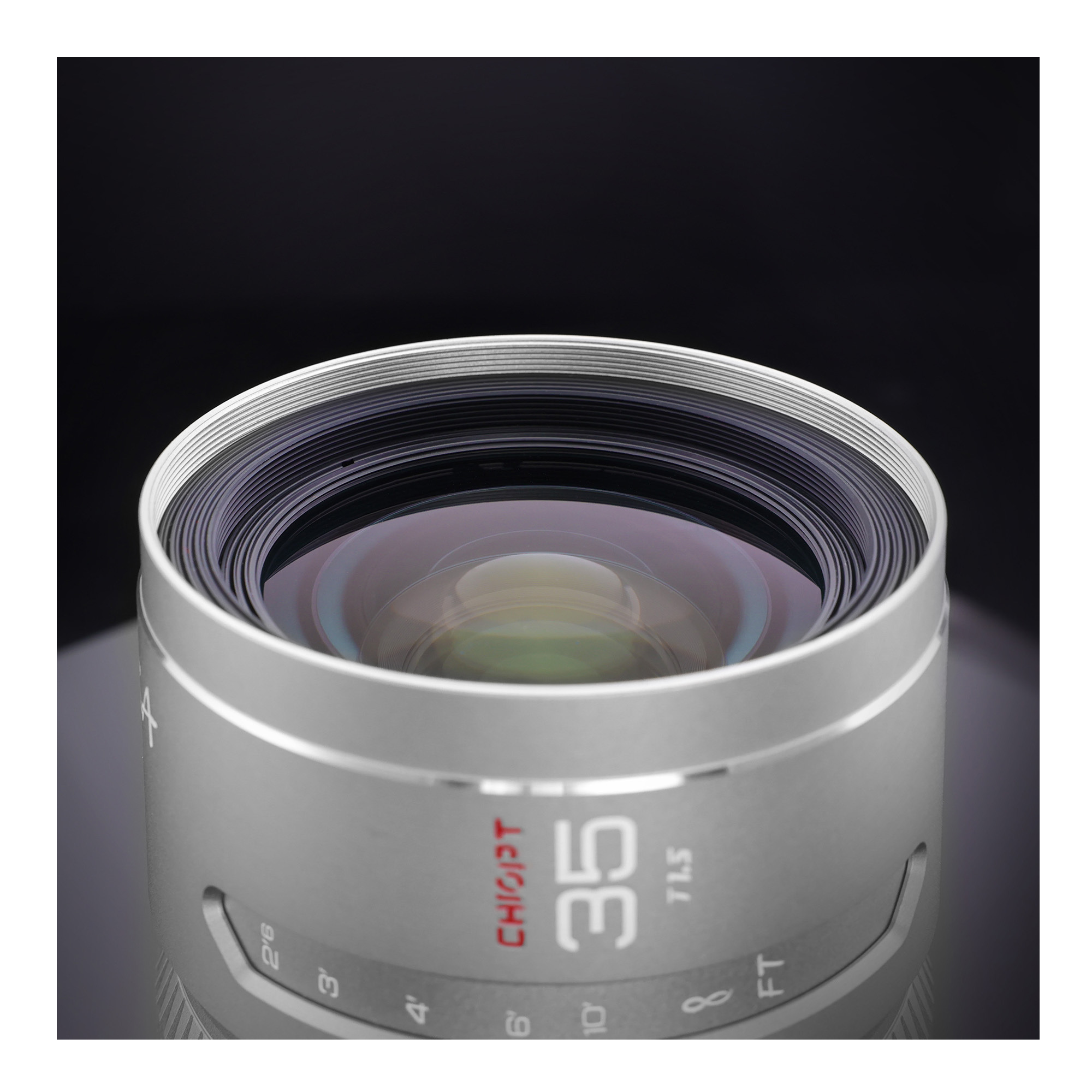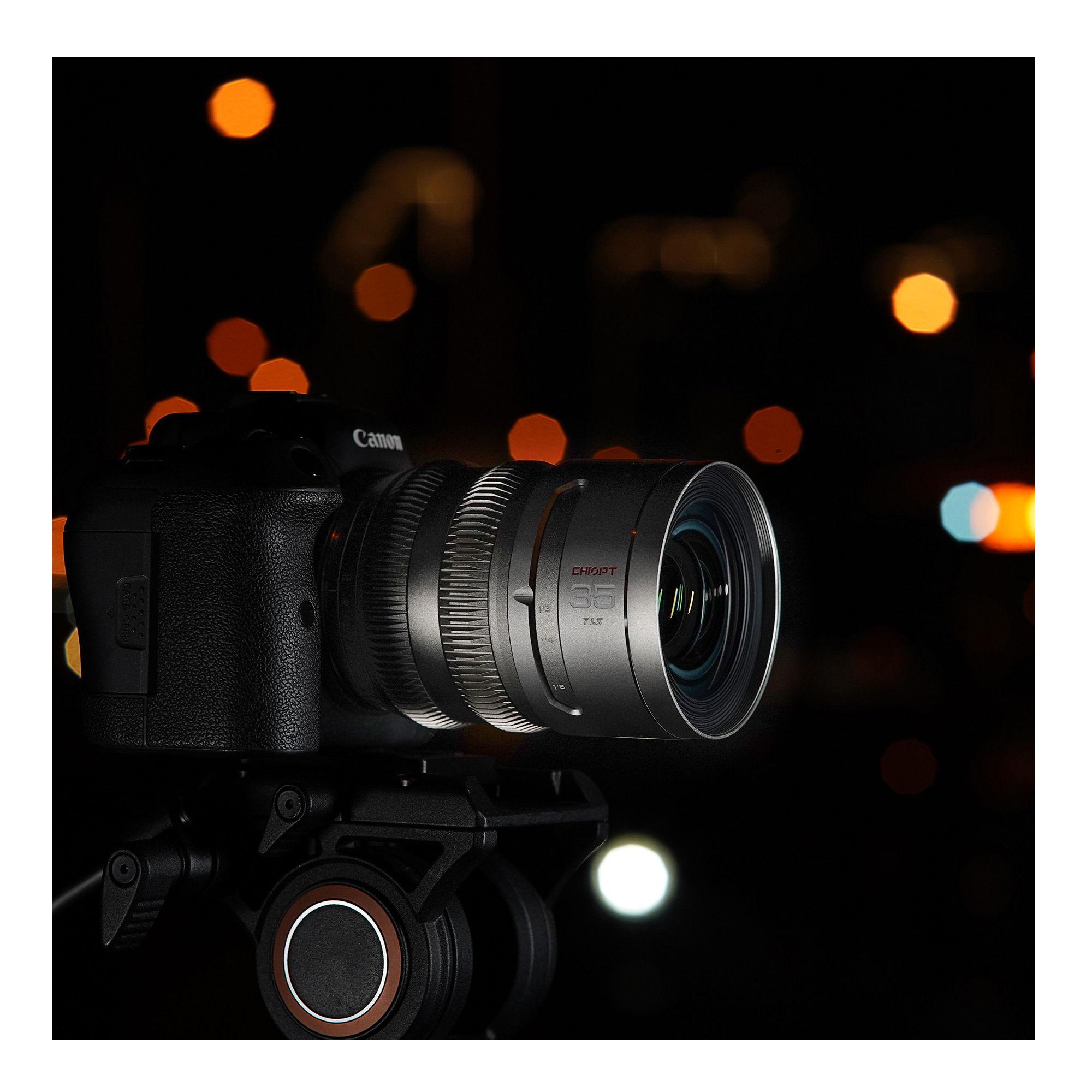 Capture stunning full-frame video with the CHIOPT AURA 35mm T1.5 Cinema Lens. This Canon RF-mount prime lens delivers vivid colors, soft bokeh, and minimal distortion for true-to-life, cinematic footage. Its bright T1.5 aperture allows excellent low-light performance and artistic subject separation. Lightweight and compact, it features industry-standard 0.8 MOD focus and iris gears and a 72mm filter thread. Perfect for filmmakers seeking a professional, high-quality lens with sharp edge-to-edge clarity.