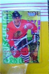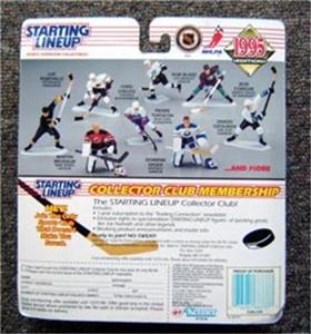 DescriptionITEM: 1995 Chris Chelios Hockey Starting Line Up Figure Mt 4". Chelios is in his Chicago Blackhawks uniform holding a hockey stick. Includes Chelios Staring LineUp Card. For ages 4 to 104. Great collectors item for the Chelios or hockey fan. CONDITION: Figure is mint in package, never removed. Complete. Cardboard backing is also in excellent condition. TERMS: Winning bidder adds $6.00 s/h for USA. International bidders - please inquire.