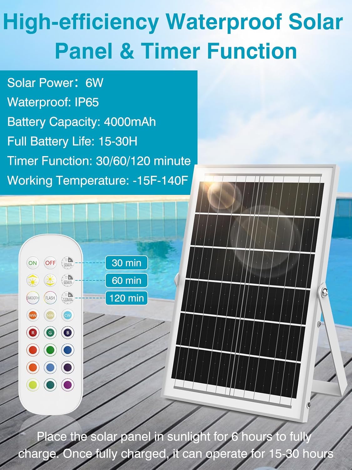 Function: remote control, rechargeable, fountain light battery capacity 1800 mAh