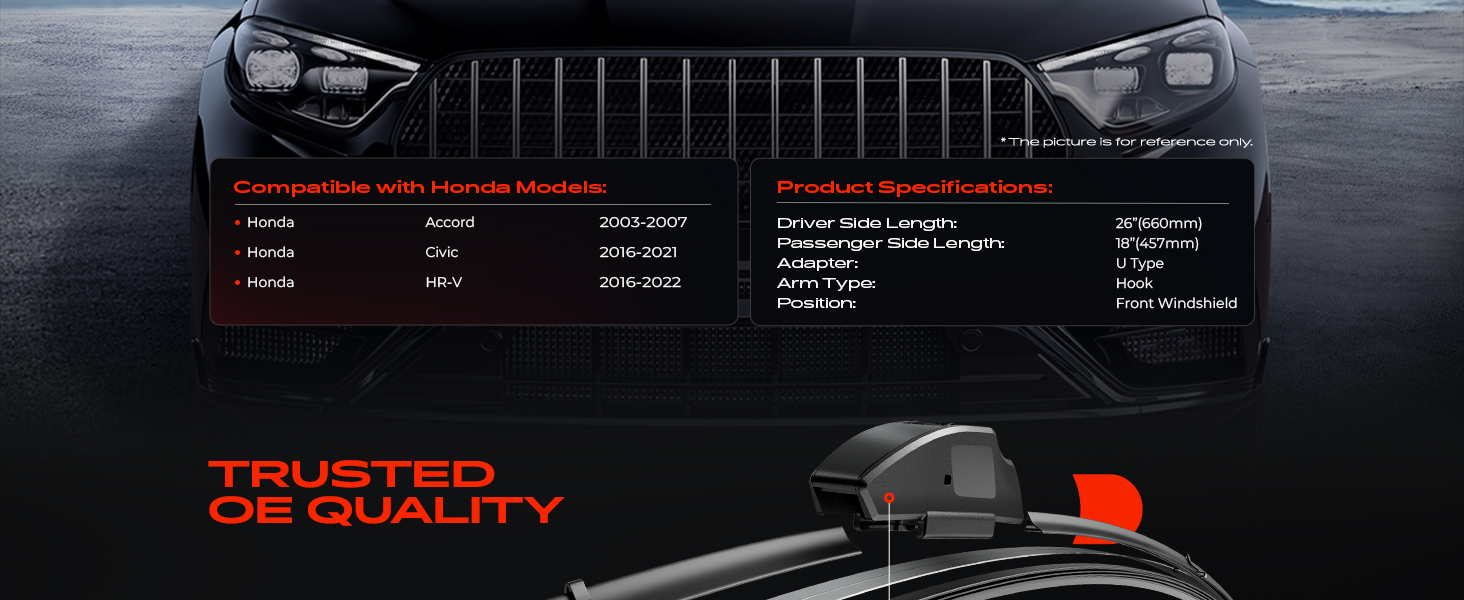 A-Premium 2Pcs Front 26" & 18" Windshield Wiper Blades for Honda Civic Accord