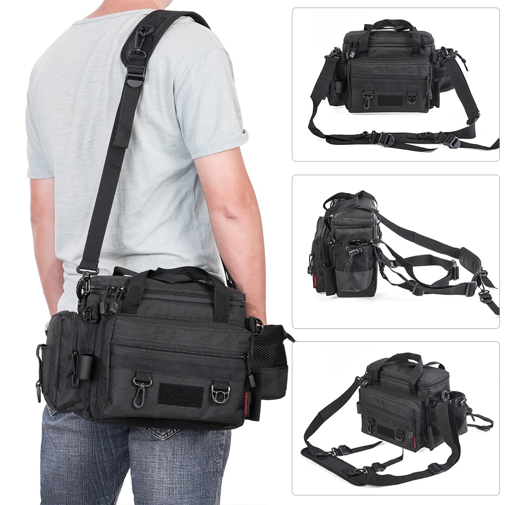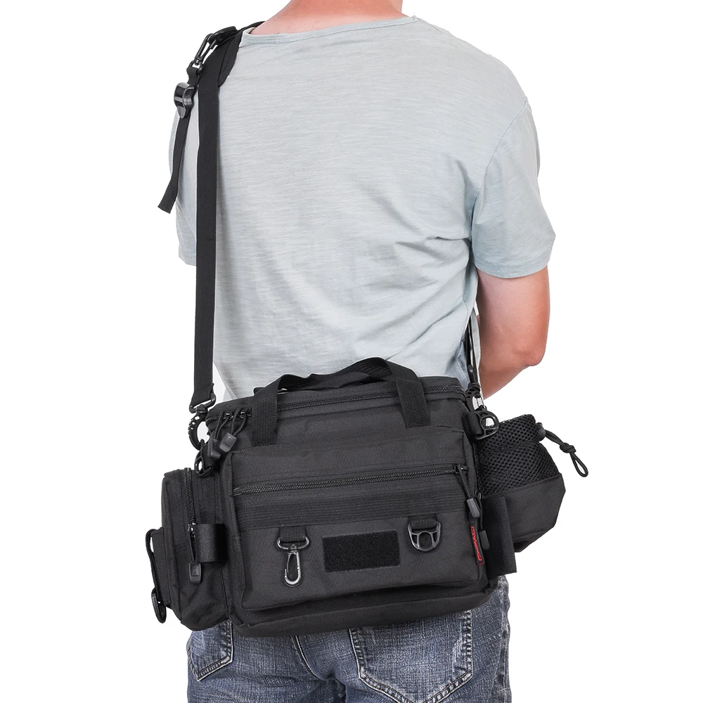 This is a multifunctional fishing bag that can be used as a handbag, shoulder bag, crossbody bag, and waist bag. It has a large capacity to keep your fishing tackles organized. This bag is a great gift for any angler.