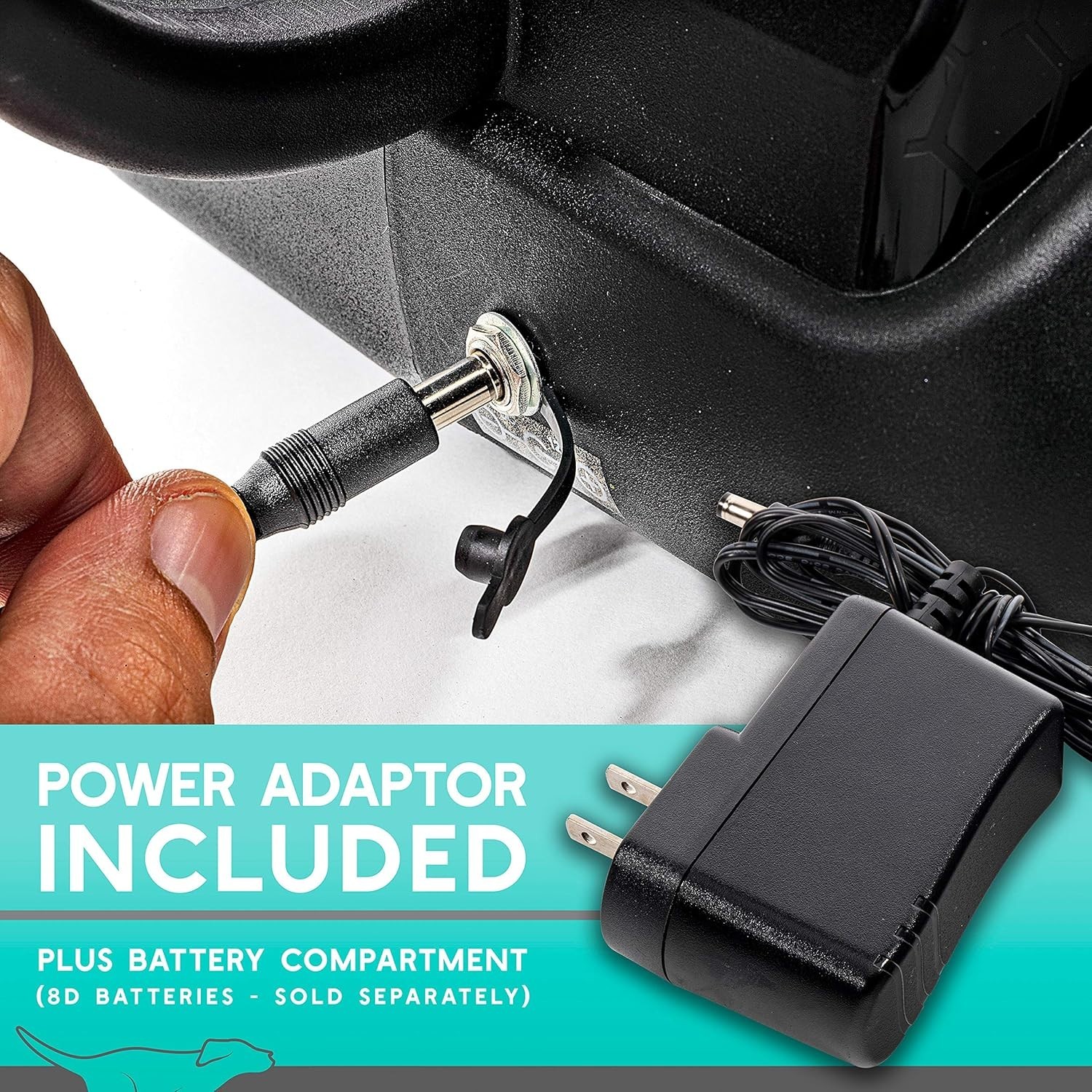 Battery compartment compatible with [8] D size Alkaline Batteries (sold separately).