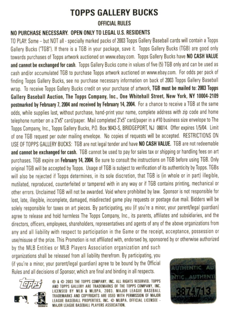 2003 Topps Gallery Bucks #5 Willie Mays $5 - BB