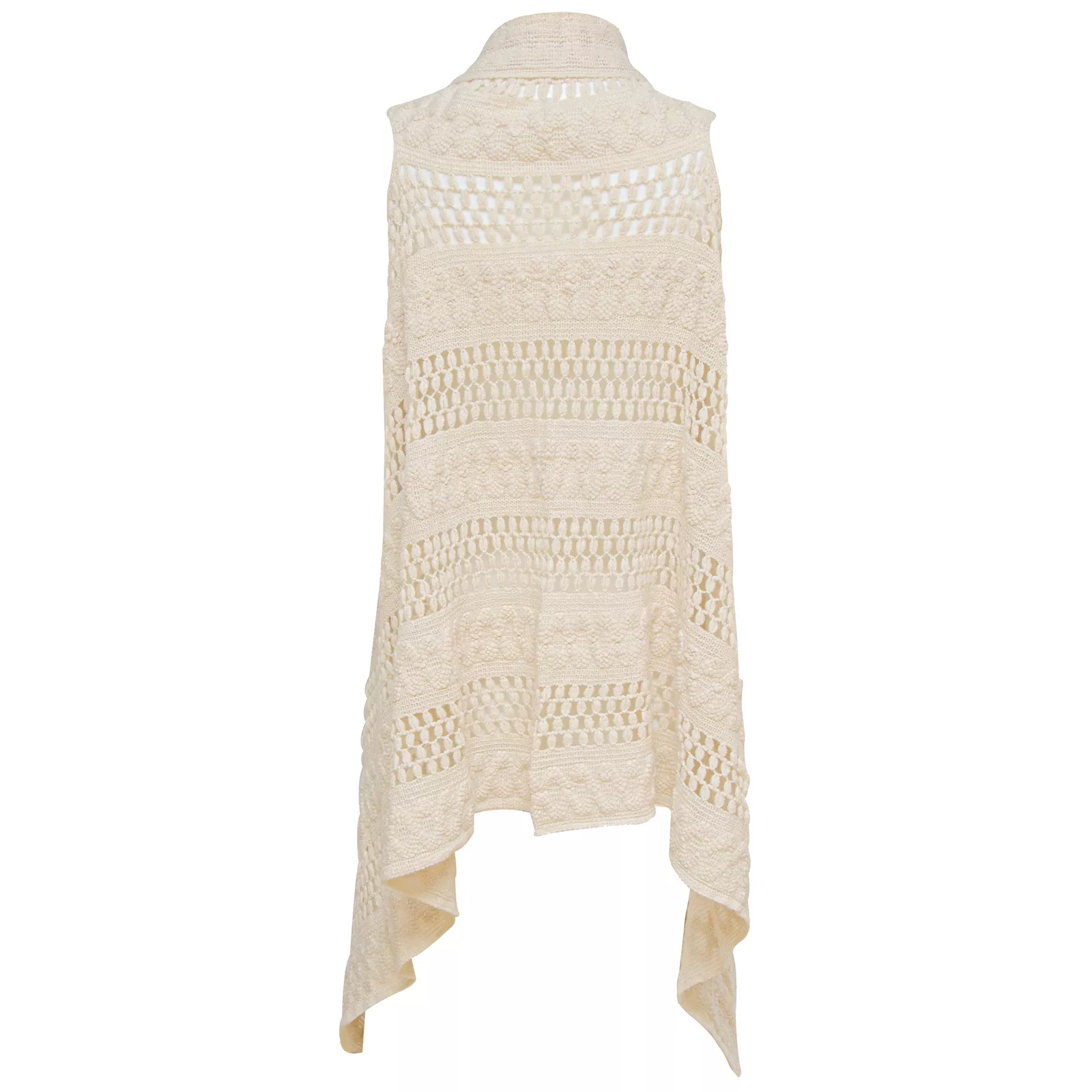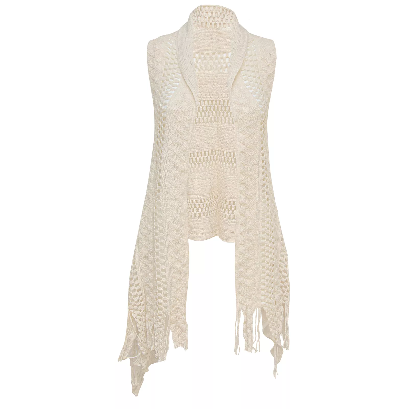 Women's Boho Sleeveless Open Front Crocheted Cardigan in Ivory, One Size