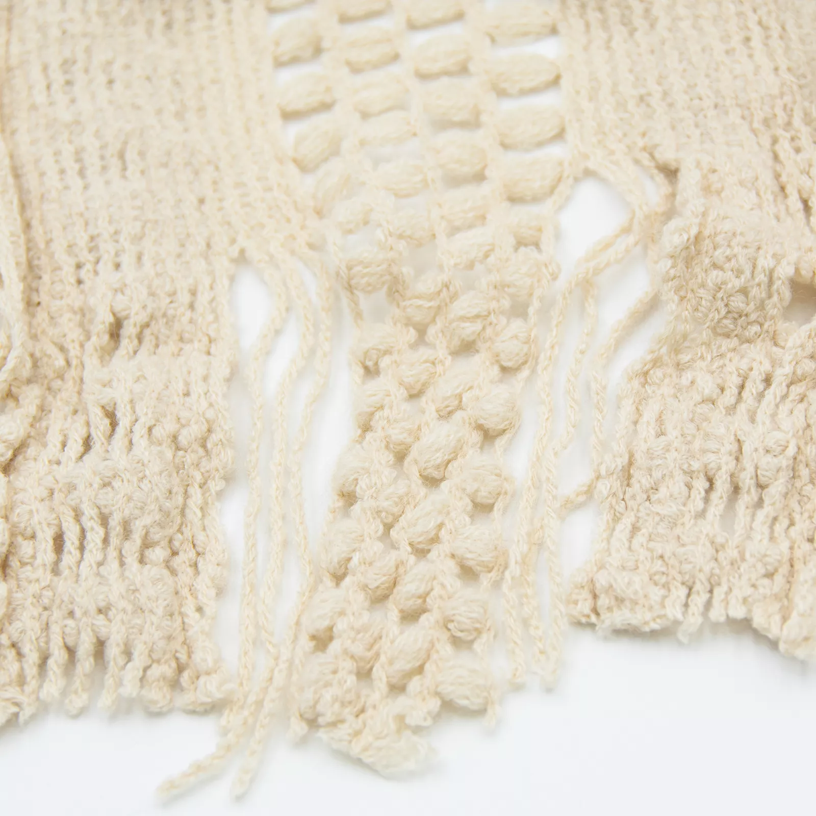 - BOHO CROCHET KNIT CARDIGAN VEST – Stylish sleeveless open front cardigan featuring a delicate hollow crochet pattern and fringe detailing for a trendy bohemian look
