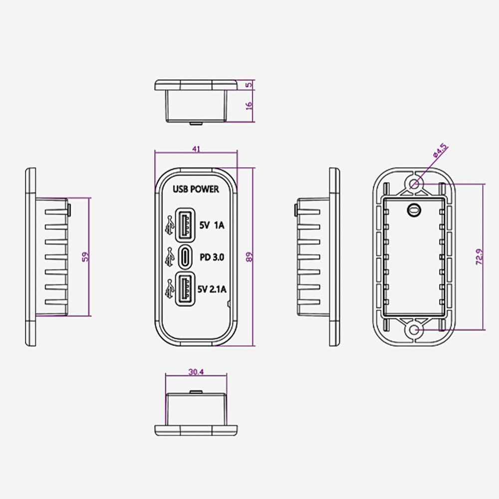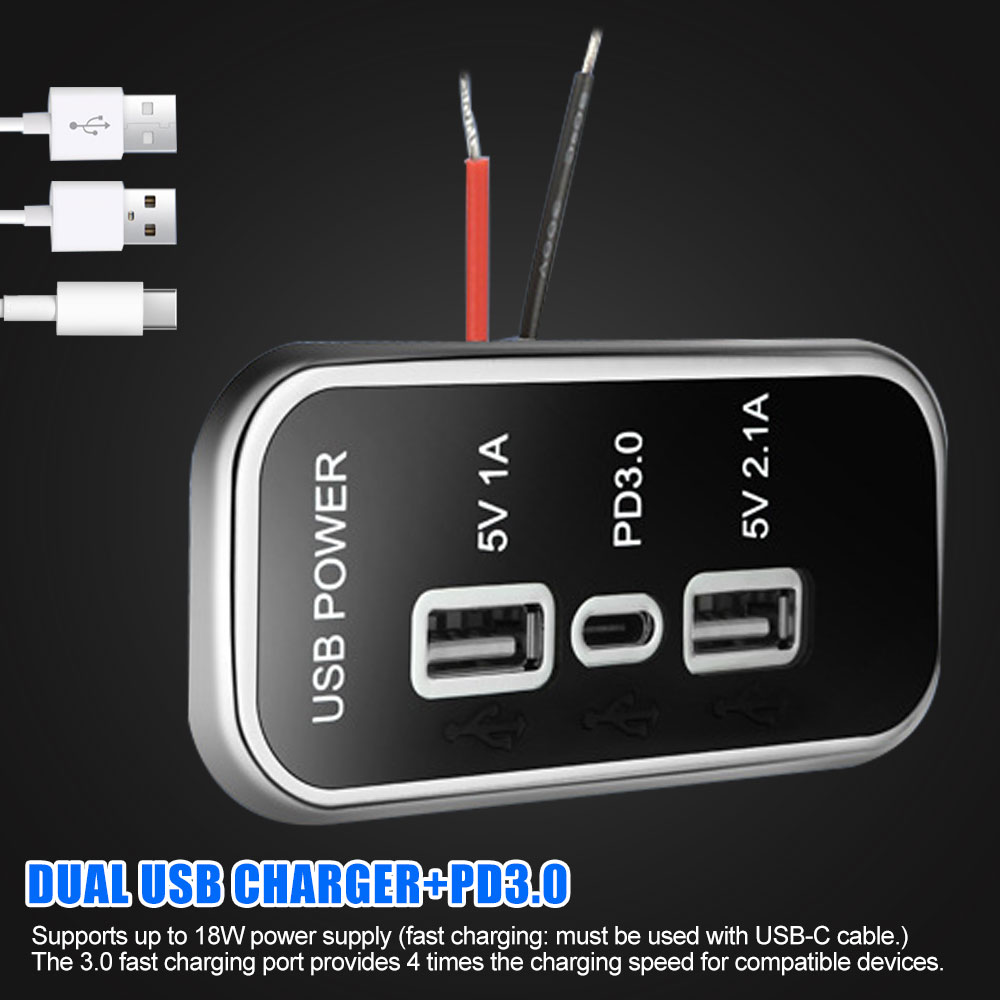 1.QC3.0+dual PD USB ports support up to 18W power supply (fast charge: must be used with USB-C to cable.)