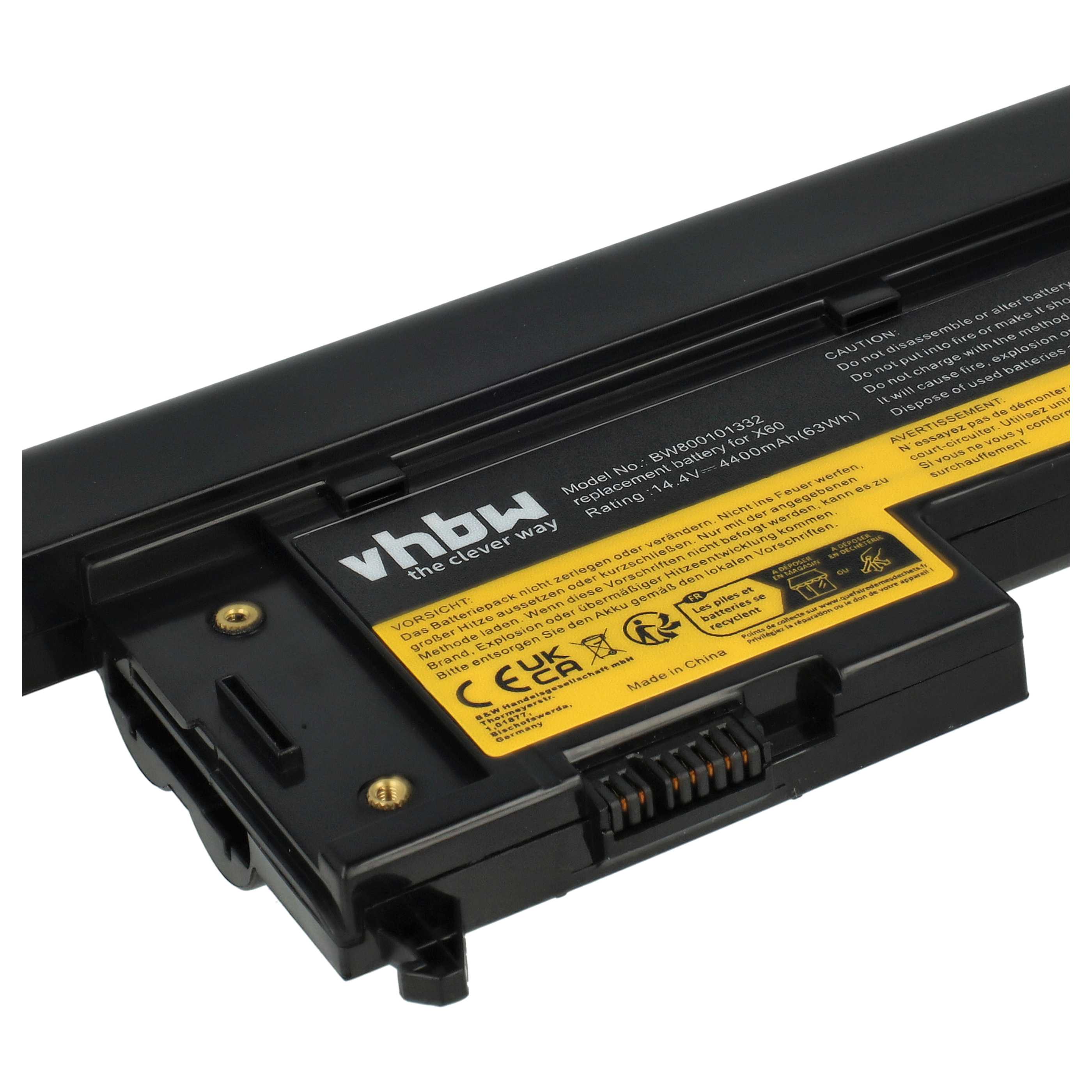 vhbw Replacement battery for Lenovo ThinkPad X61 7673, X60s 2533, X60s 2524, X60s 2522 laptop or netbook computer (Li-Ion, 4400mAh, 14.8V)