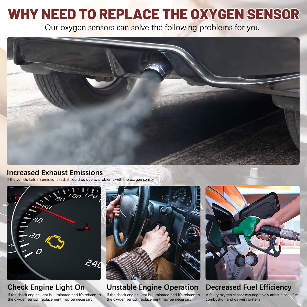 Packag includes: 1x Upstream Oxygen Sensor As The Pictures Shown. Note: Please provide your vehicle VIN number. Please Carefully Check Whether the OE Number And Picture are What You Need Before Buying. If You are Not Sure Whether it fits, Please write to us. If There are Any Problems, Communication by Letter Will be More Effective No Instruction Included, professional installation is highly recommended. Symptoms of a bad osygen sensor: √√√ A decrease in fuel economy √√√ Engine Hesitation or misfire √√√ Rough Idling √√√ look the oxygen sensor's leader |