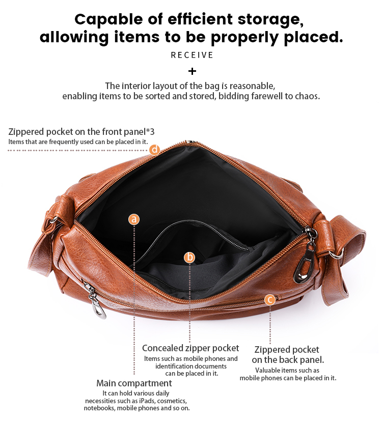 Space for a number of small electronic devices: tablet, kindle, power bank, wireless earphones etc.