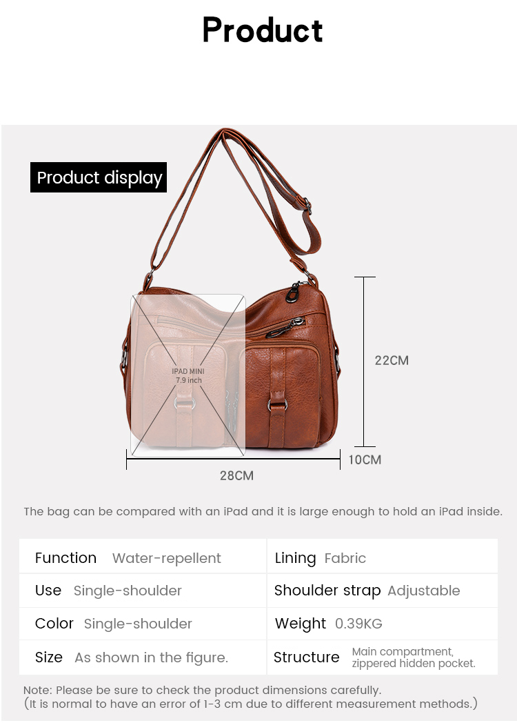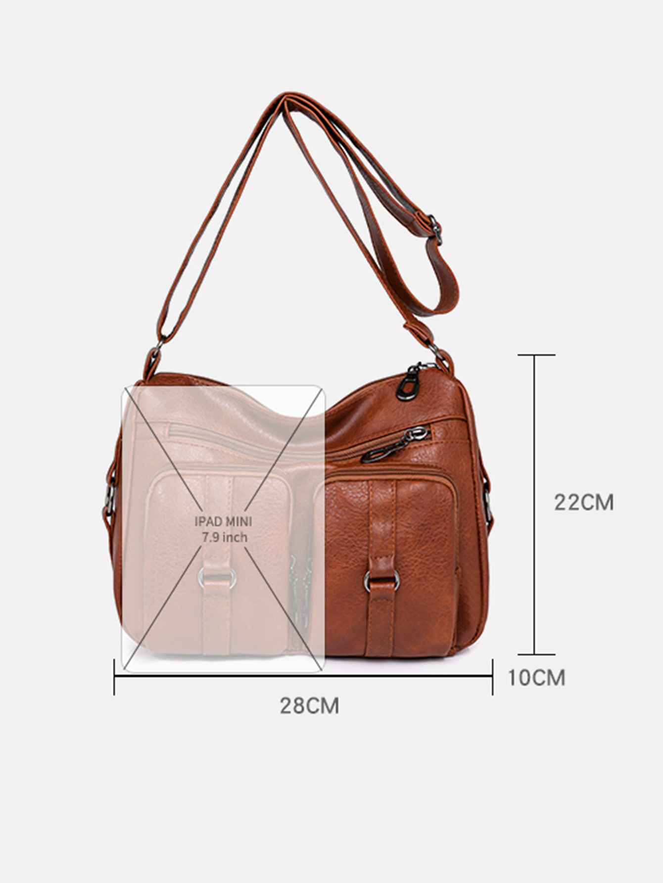 The bag can be carried in one of two ways. It features an adjustable shoulder/cross body strap so you can carry the bag in the most comfortable way for you, or you can just use the top handles which is ideal for hand held use or in the nook of your arm.