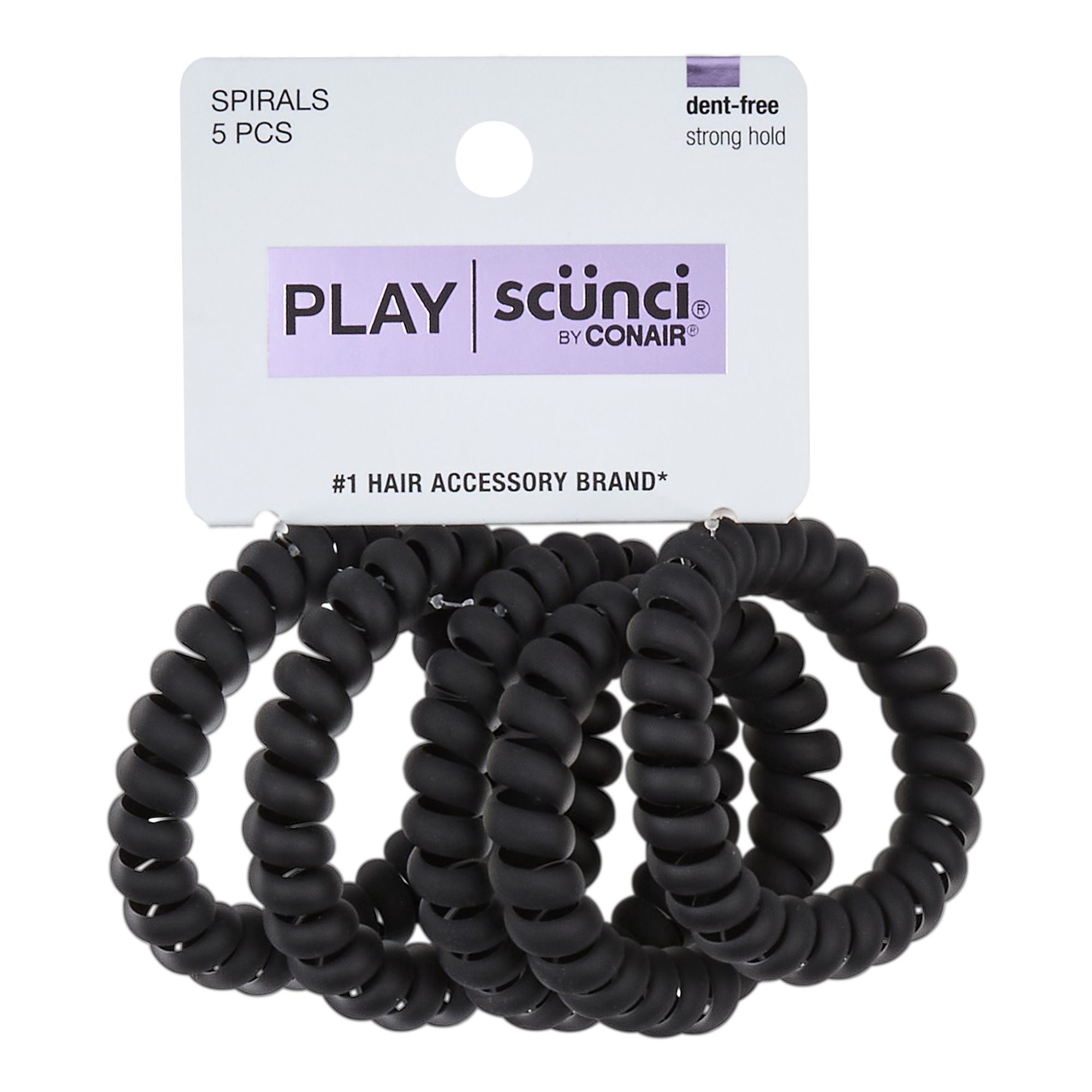 Scunci Play Dent-Free Strong Hold Core Silicone Spirals, Matte Black, 5-Count