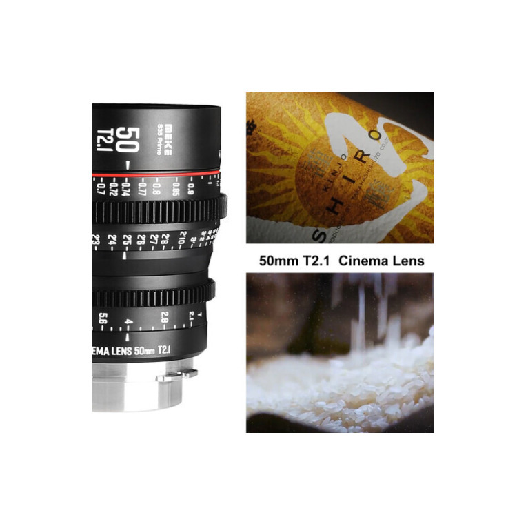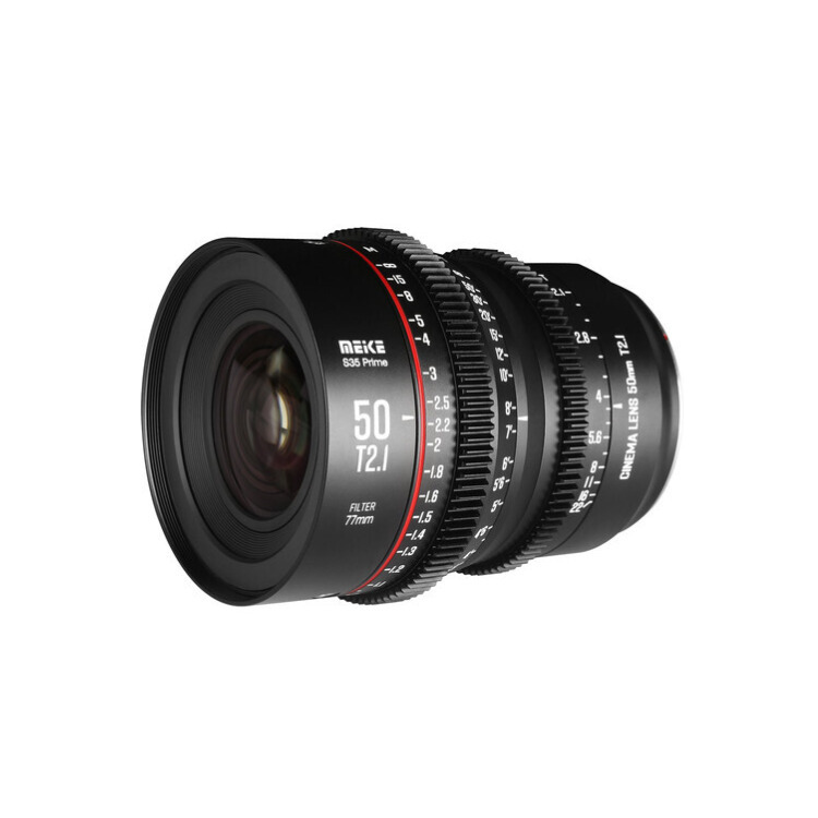 Designed with a 33.6mm image circle to cover Super 35 sensor cameras such as the RED KOMODO, Blackmagic Pocket Cinema Camera 6K, Z CAM S6, Canon C500, or Sony FS5 II, the EF-mount 50mm T2.1 Super 35 Cine Prime Lens from Meike is suitable for 6K resolution capture. It features cine-standard 0.8 MOD focus and iris gears and an 11-blade iris for smooth bokeh. This lens also features multiple coatings for minimal ghosting and flaring, and it offers 270 degrees of focus barrel rotation. For easier focus pulls, the focus scales are marked in both feet and meters on both sides of the lens barrel.