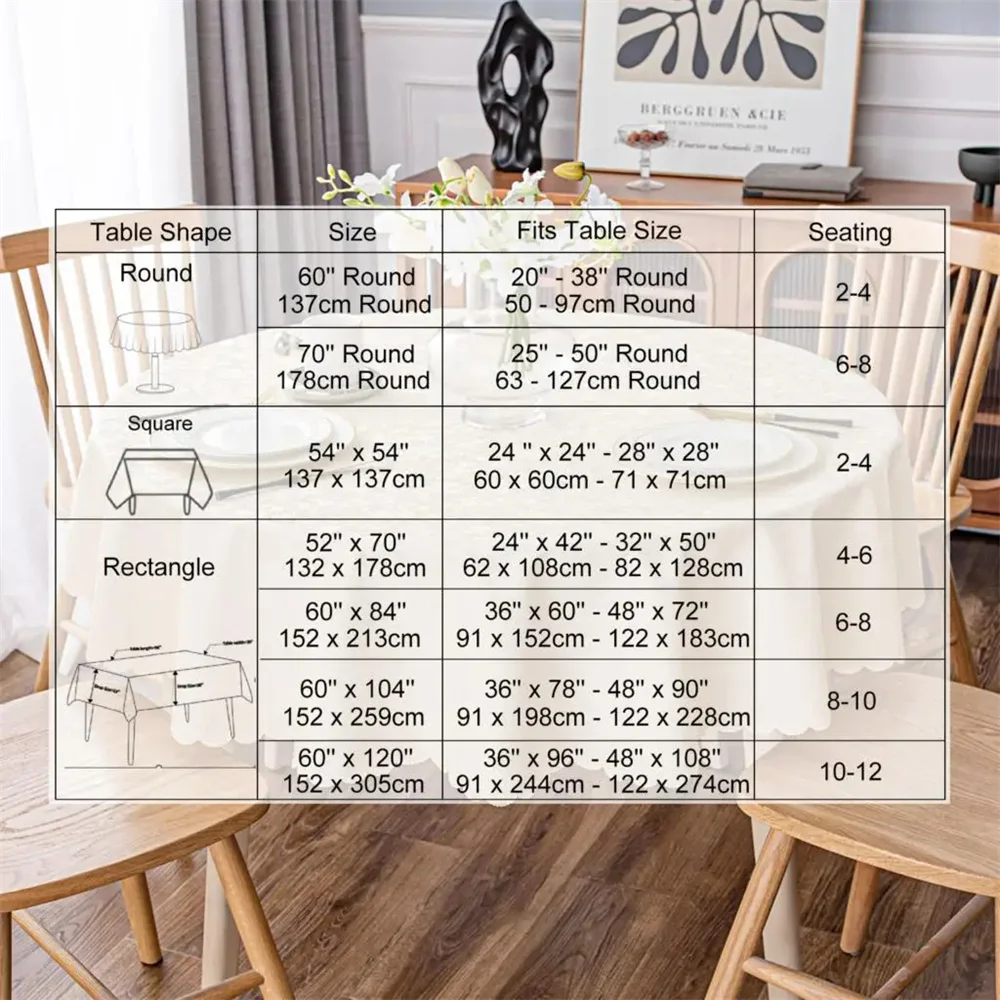 Featuring floral embossed tablecloth with pretty scalloped edges, nice warm tone and soft touch add an elegant touch to these tablecloths, they are perfect to light up your fancy dinner.