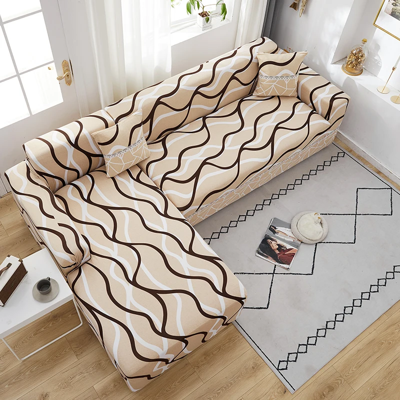 STAYS IN PLACE: If your sofa is L type or Corner combined with 2 parts separately, you need to order 2pcs cover for it. This sofa cover applicable to the sofa which there is a deep gap between seat with backrest and armrest. The small cloth strip that you use to hold in place, push them down and under as far as you can, will hold in place.
