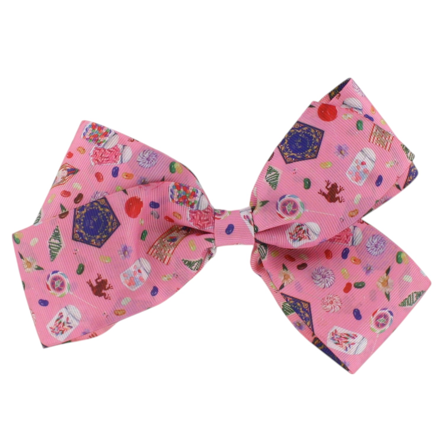 Add a dash of whimsical charm to your hair with the Harry Potter by Scunci Wizarding World Bow Barrette. This large, vibrant pink bow features playful prints inspired by the magical sweets of the Wizarding World—like Chocolate Frogs, Bertie Bott’s Every Flavor Beans, and more. Whether you're heading to Hogwarts or just want to infuse your outfit with some enchanted flair, this bow is a spellbinding addition to any hairstyle. The sturdy barrette clip ensures a secure hold, while the grosgrain ribbon material offers durability with a soft, textured finish. Perfect for fans of all ages, this barrette is great for school, parties, or everyday adventures.