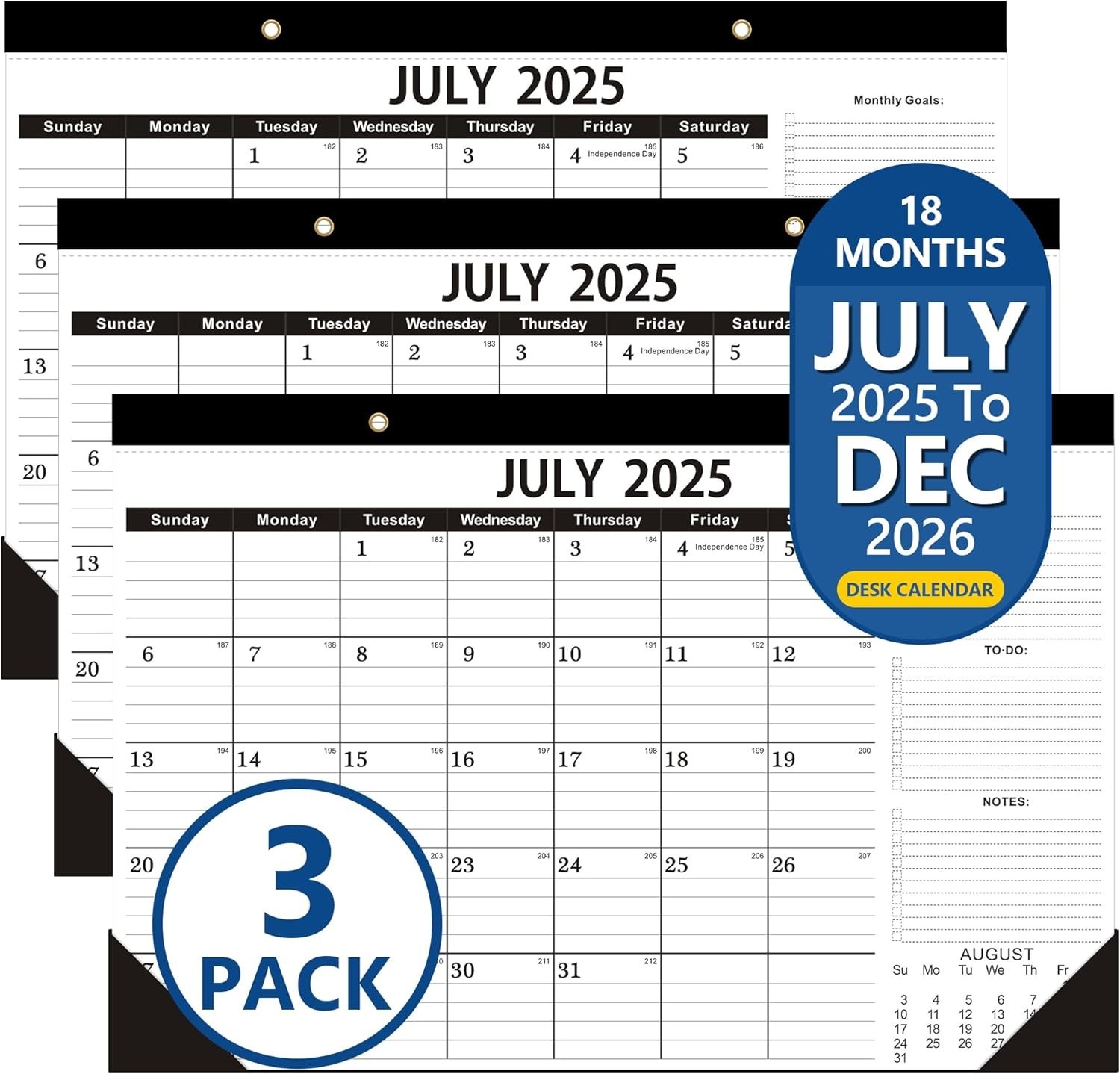 2025-2026 Calendar Pack - 3 Large Desk & Wall Calendars with Waterproof Features