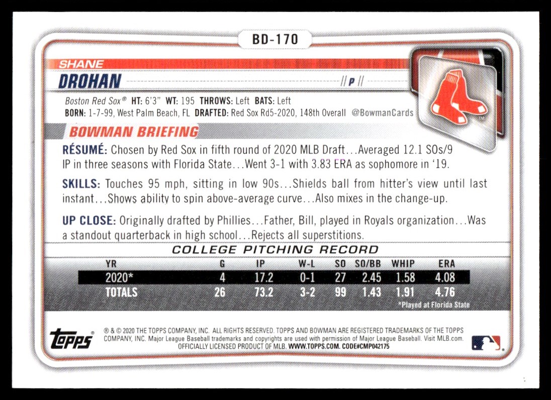 | 2020 Bowman Draft Shane Drohan Boston Red Sox #BD-170 |