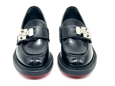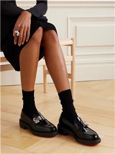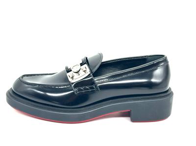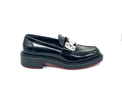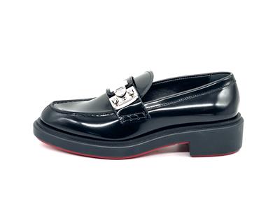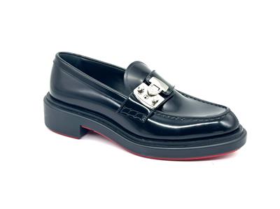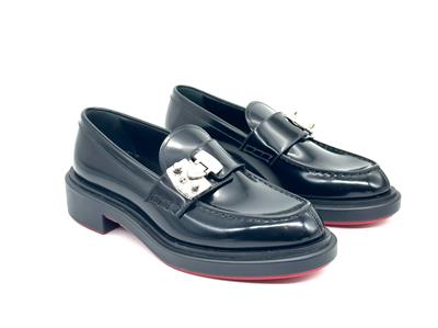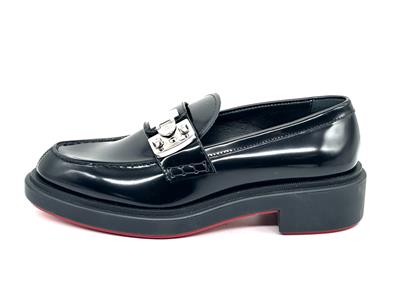 - A cool re-interpretation of classic penny loafers, Christian Louboutin's ‘Urban Moc Lock’ style is topped with silver-tone hardware that's etched with the logo. They're made from glossed-leather and have traditional topstitching and signature red soles.