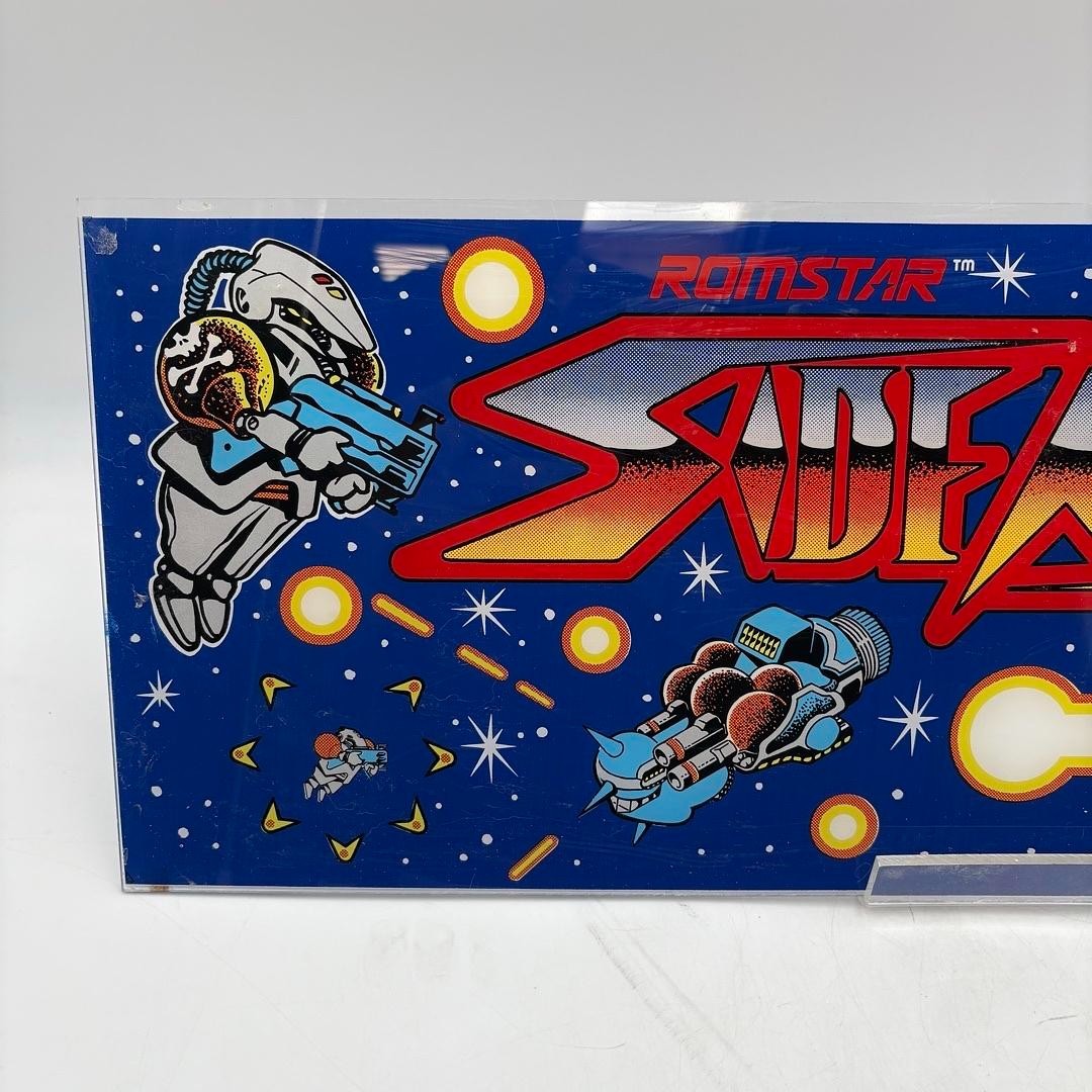 This collectible item is a replacement part for arcade gaming enthusiasts looking to restore or customize their arcade machines. The marquee header adds a touch of nostalgia and authenticity to the gaming experience, showcasing the game's iconic design and branding.