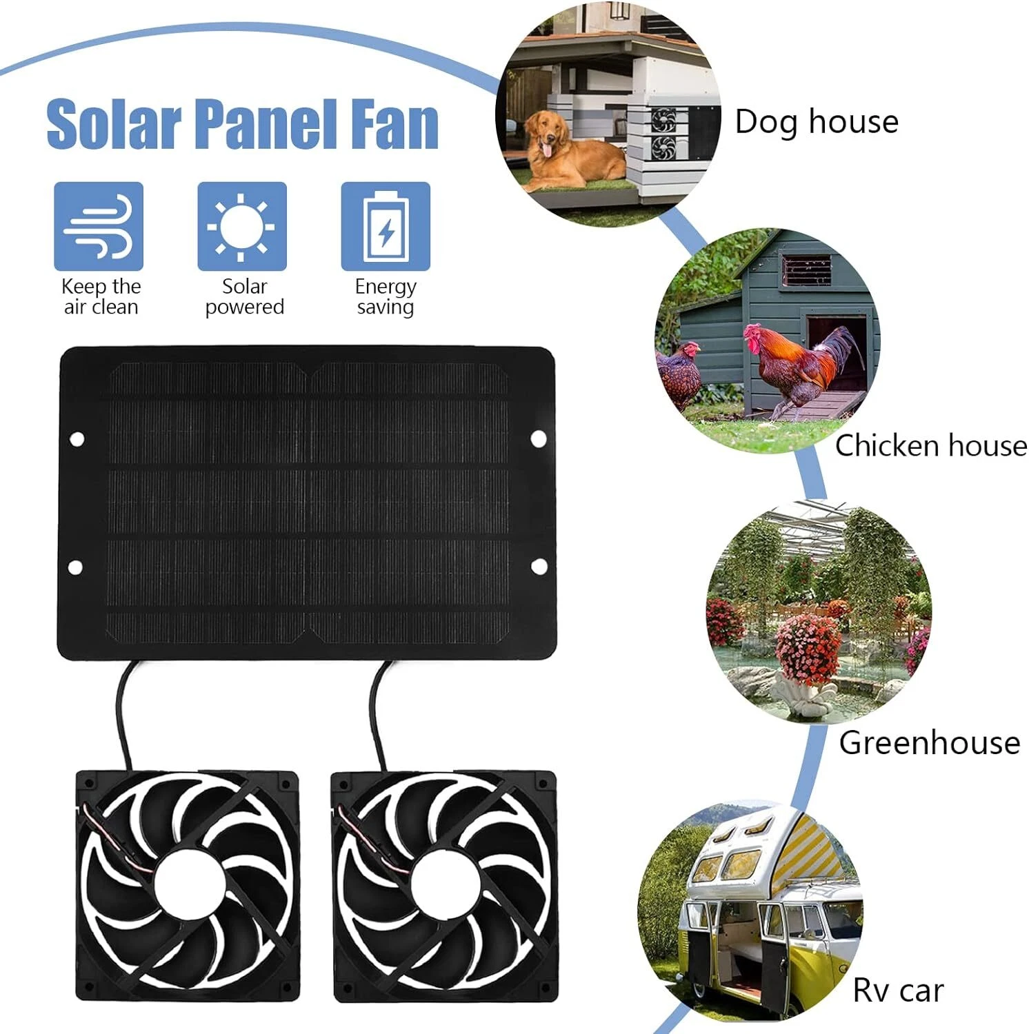 panel. When the sun is weak, the fan will work slowly or even stop