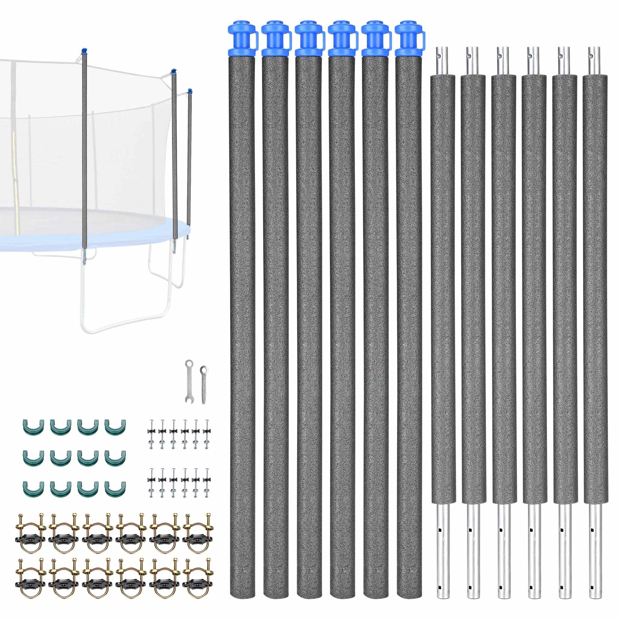 - Universal Fit - Set of 6 Trampoline Replacement Enclosure Poles compatible with most 10/12/13/14/15 ft trampolines with 6 straight poles, designed to upgrade your trampoline with brand new look while replace the worn-out parts, ensuring a safe and enjoyable trampolining experience