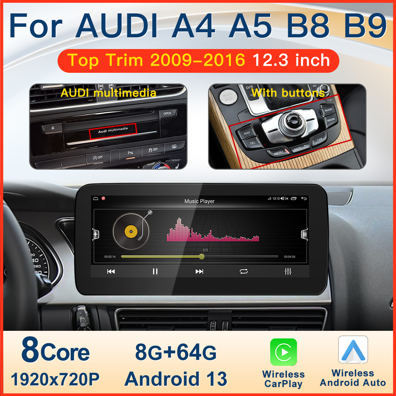- für Audi A4L A5 B8 B9 (2009-2016) Höhere Version, Original Radio mit den Namen "Audi Multimedia" ,mit Buttons