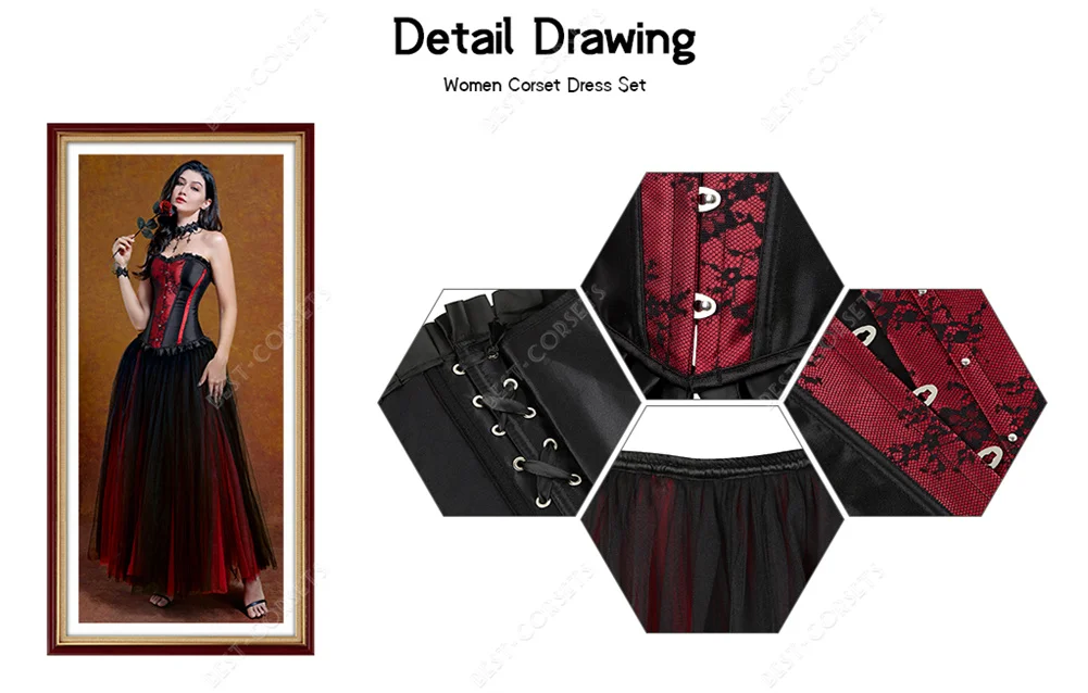 XL-- Corset:Waist: 76-81CM,Bust:89-94CM, Top length:43-46CM
