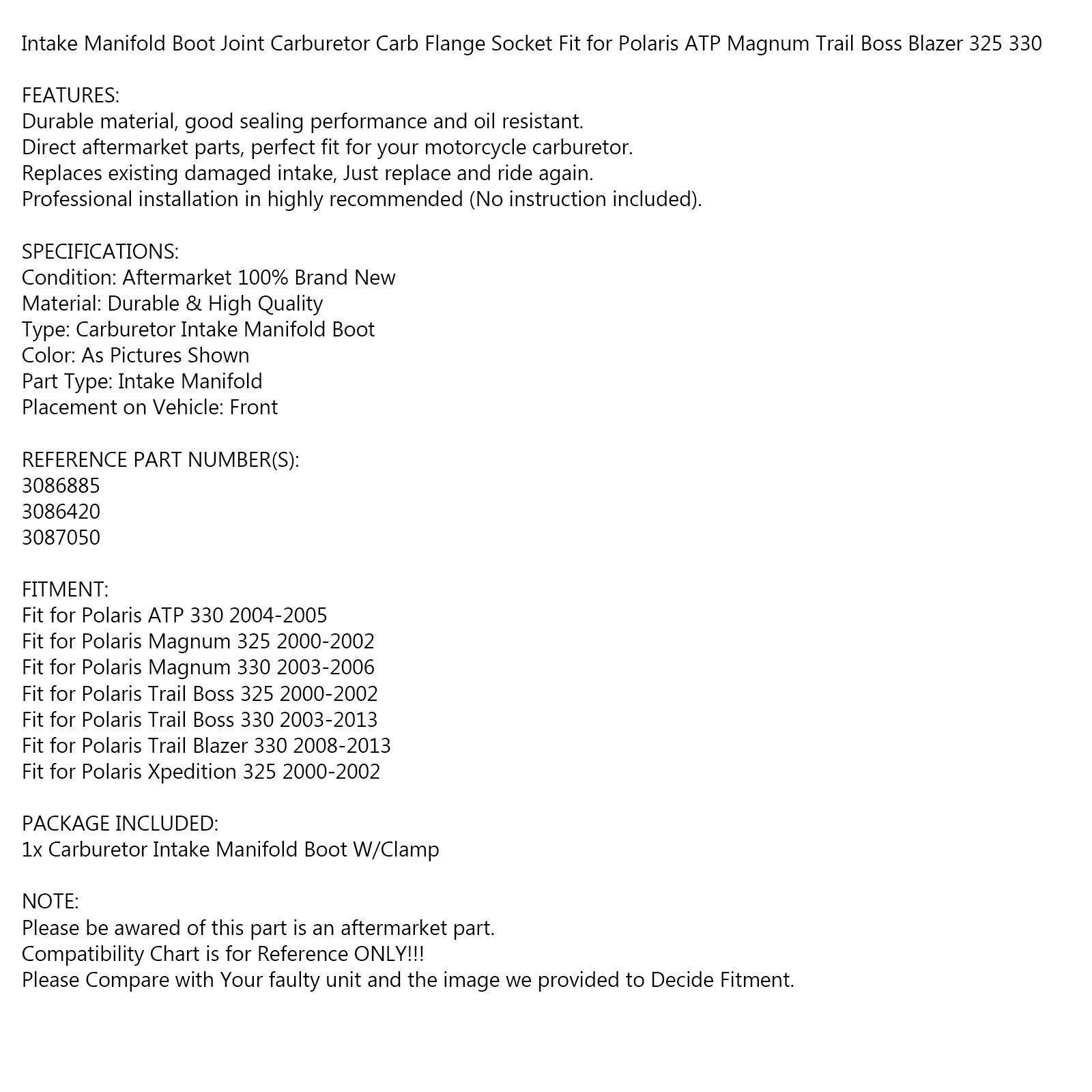 Intake Manifold Boot Joint Carburetor Carb Flange Socket Fit for Polaris ATP Magnum Trail Boss Blazer 325 330