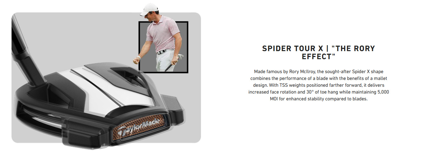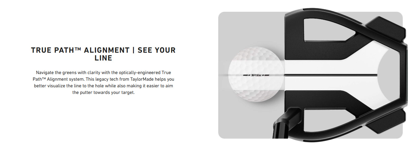 For nearly two decades Spider putters have been claiming major championships, clinching the biggest team competitions, and stacking victories across professional tours globally. Now, we have revitalized the essence of this iconic franchise with the all-new Spider Tour Series. Made famous by Rory McIlroy, the sought-after Spider X shape combines the performance of a blade with the benefits of a mallet design. With TSS weights positioned farther forward, it delivers increased face rotation and 30° of toe hang while maintaining 5,000 MOI for enhanced stability compared to blades. Navigate the greens with clarity with the optically-engineered True Path™ Alignment system. This legacy tech from TaylorMade helps you better visualize the line to the hole while also making it easier to aim the putter towards your target. Experience a softer feel with our White TPU Pure Roll™ insert. Crafted from a blend of Surlyn and aluminum, it features grooves angled at 45° for optimal forward roll and better overall roll characteristics. The white insert also ensures symmetry with the white True Path Alignment. A thin wall undercut and steel wireframe allow for precision CG placement, creating a superstructure with enhanced stability and forgiveness. In addition, each Spider Tour Series model boasts a different CG location to fit a wide variety of putting styles and preferences. The HYBRAR ECHO® Damper is positioned behind the face to help remove unwanted vibrations and deliver premium sound and feel on every putt. Experience the game with the best possible sensation.