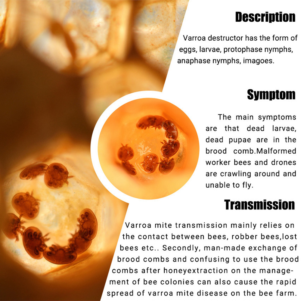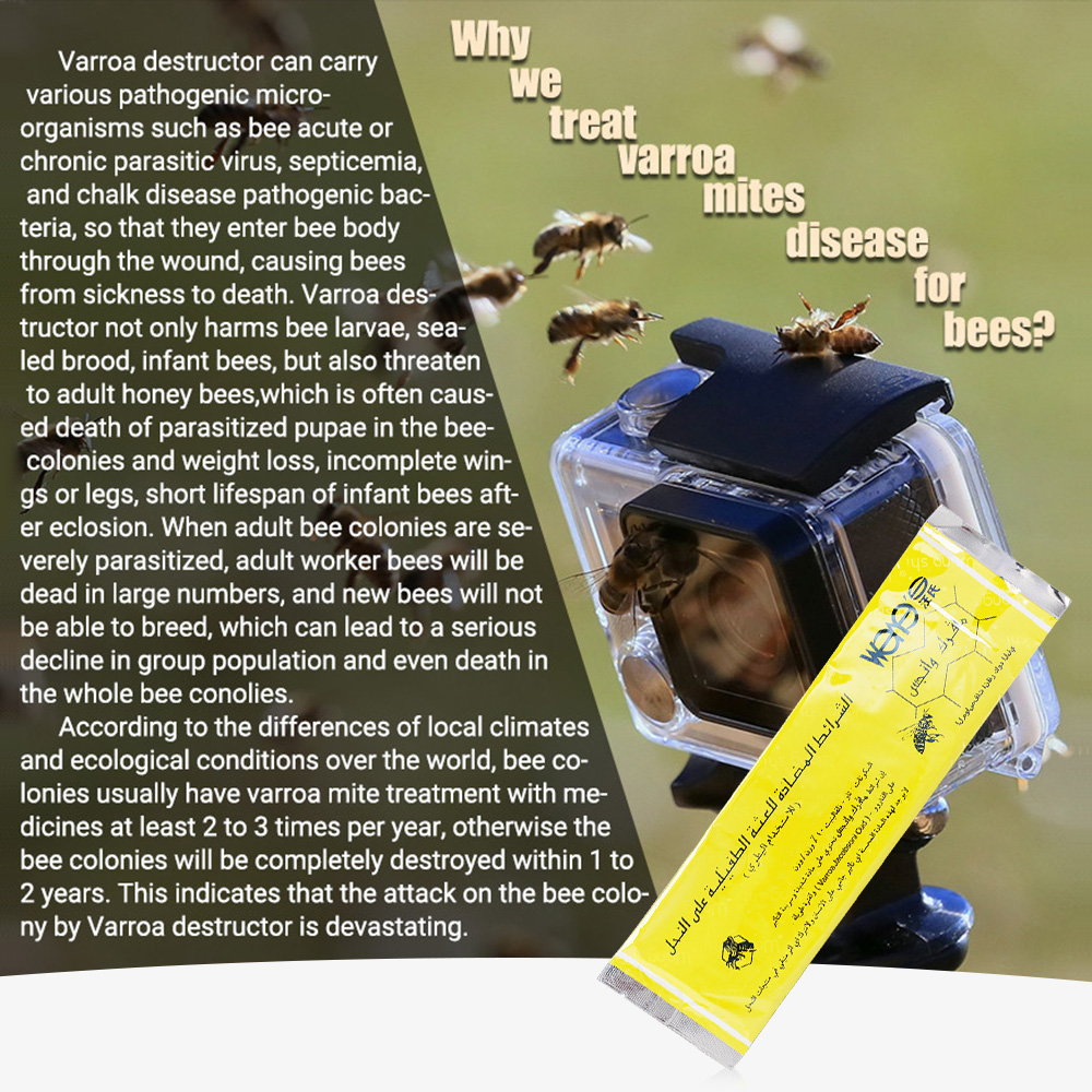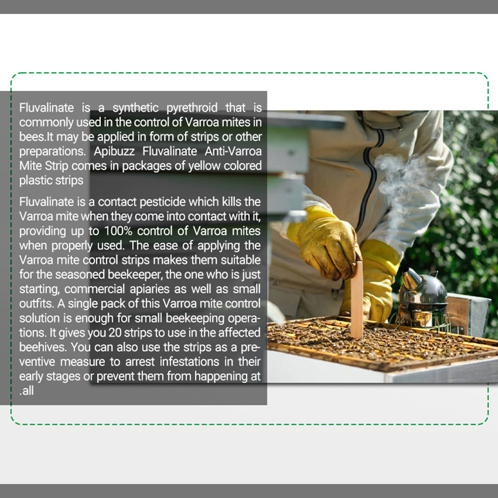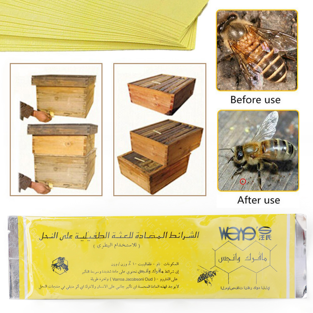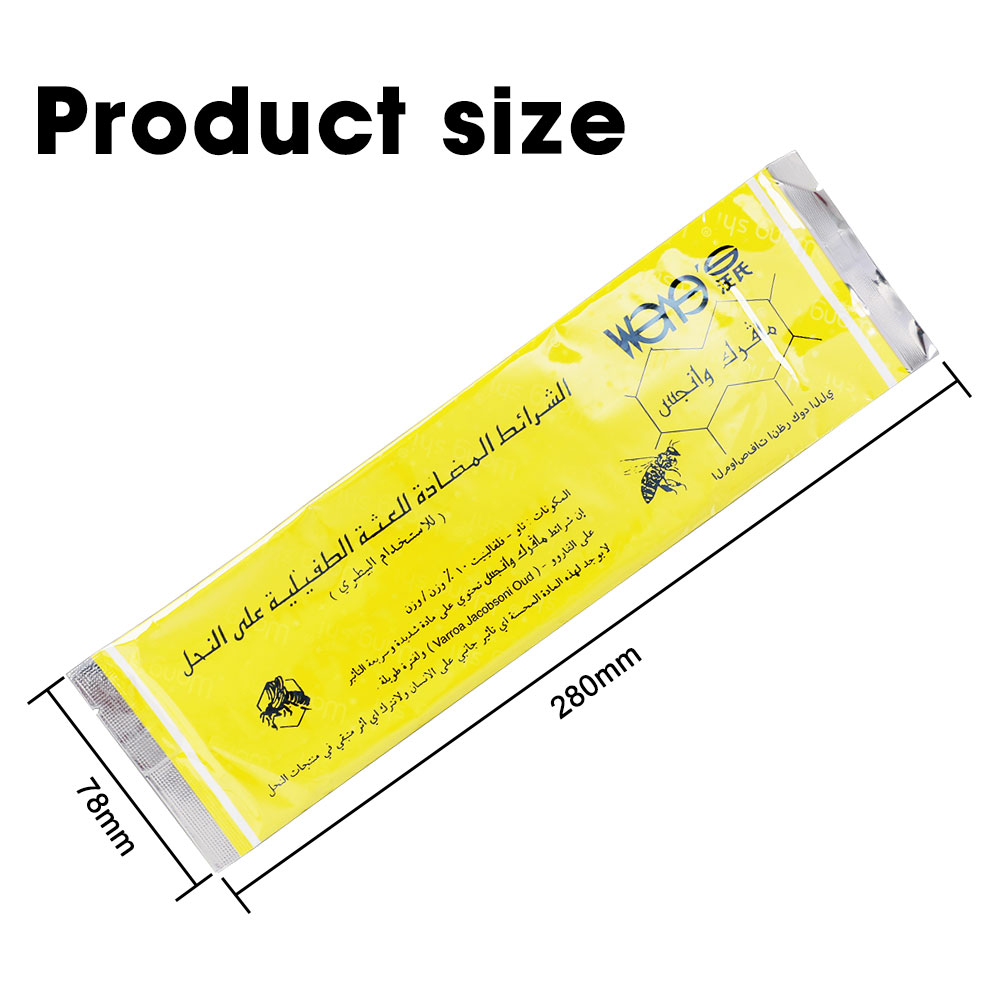 Anwendung und Dosierung: 1. Schnell wirkende und Milben-Überlebensgrundlage ausrotten. 2. Die Streifen sollten 35 Tage, jedoch nicht länger als 6 Wochen im Bienenstock verbleiben. 3.Kleine Dosis und weniger Rest, der echte grüne Umweltschutz. 4. Ermöglicht die Verwendung bei der Bienenfütterung. 5.Für normal entwickelte und starke Bienenfamilien: 2 Streifen.