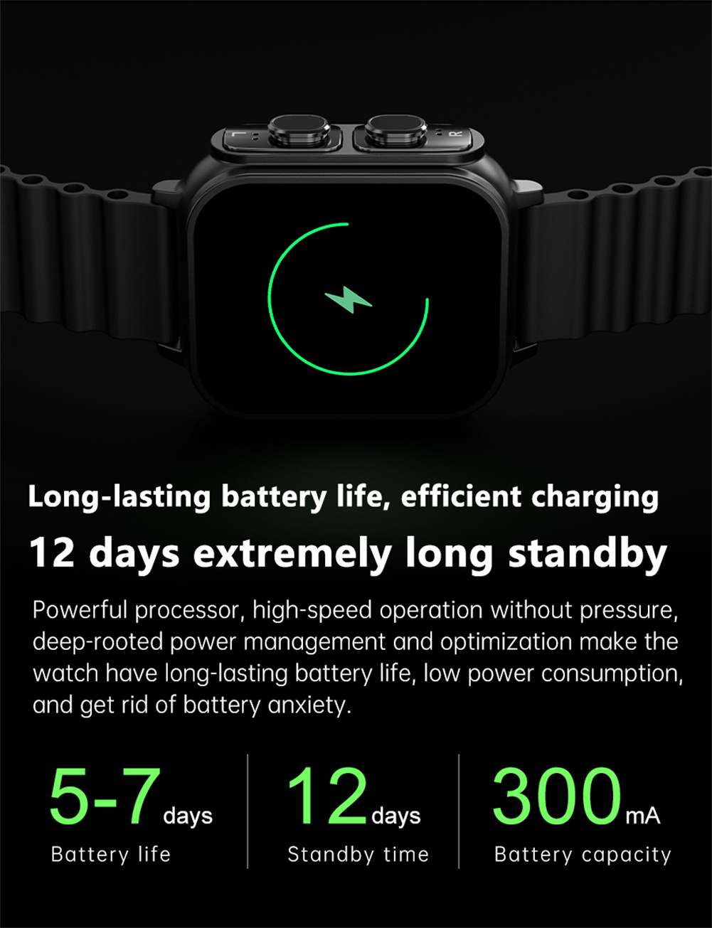 2、Supports Long-term Standby: 1.96 inch high-definition touch screen, equipped with 300mAh high-capacity polymer battery, supports long-term standby.