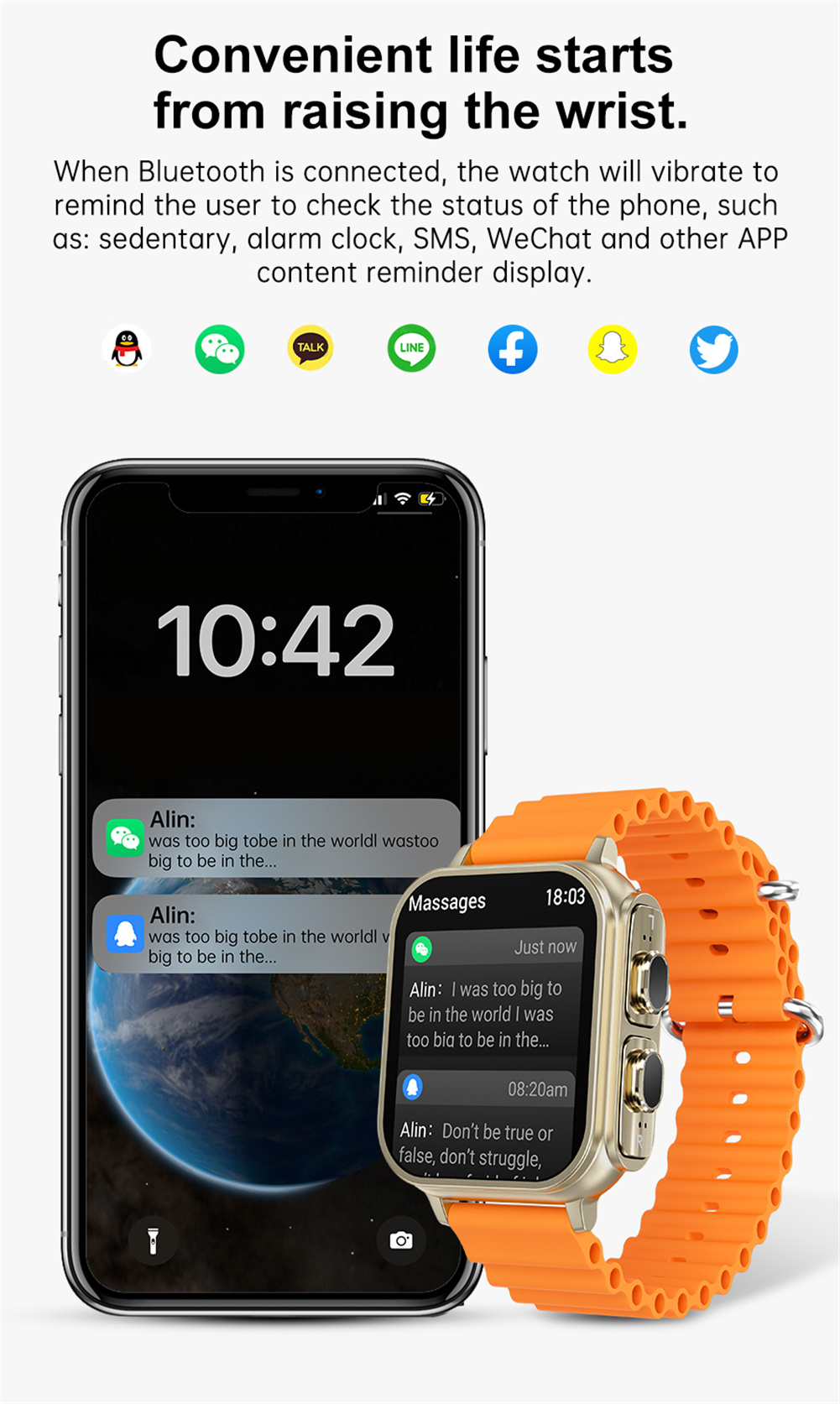 4、Main Functions: Blood pressure, Heart rate, sleep monitor, fitness tracker, on/off, standby interface settings, step count, calorie detection, sleep, information reminder/push, remote camera, search for mobile phones, music alarm clock, sedentary reminder, bracelet call reminder, weather, Bluetooth Dual headset calls.
