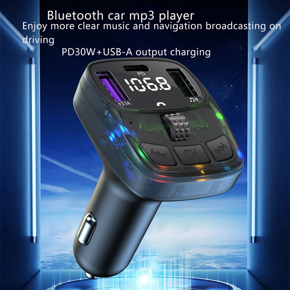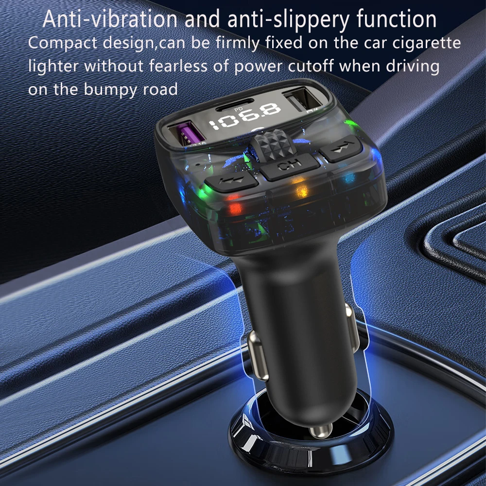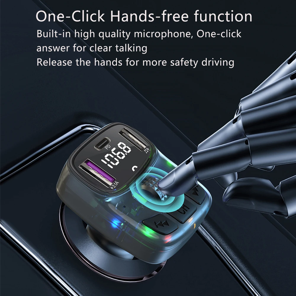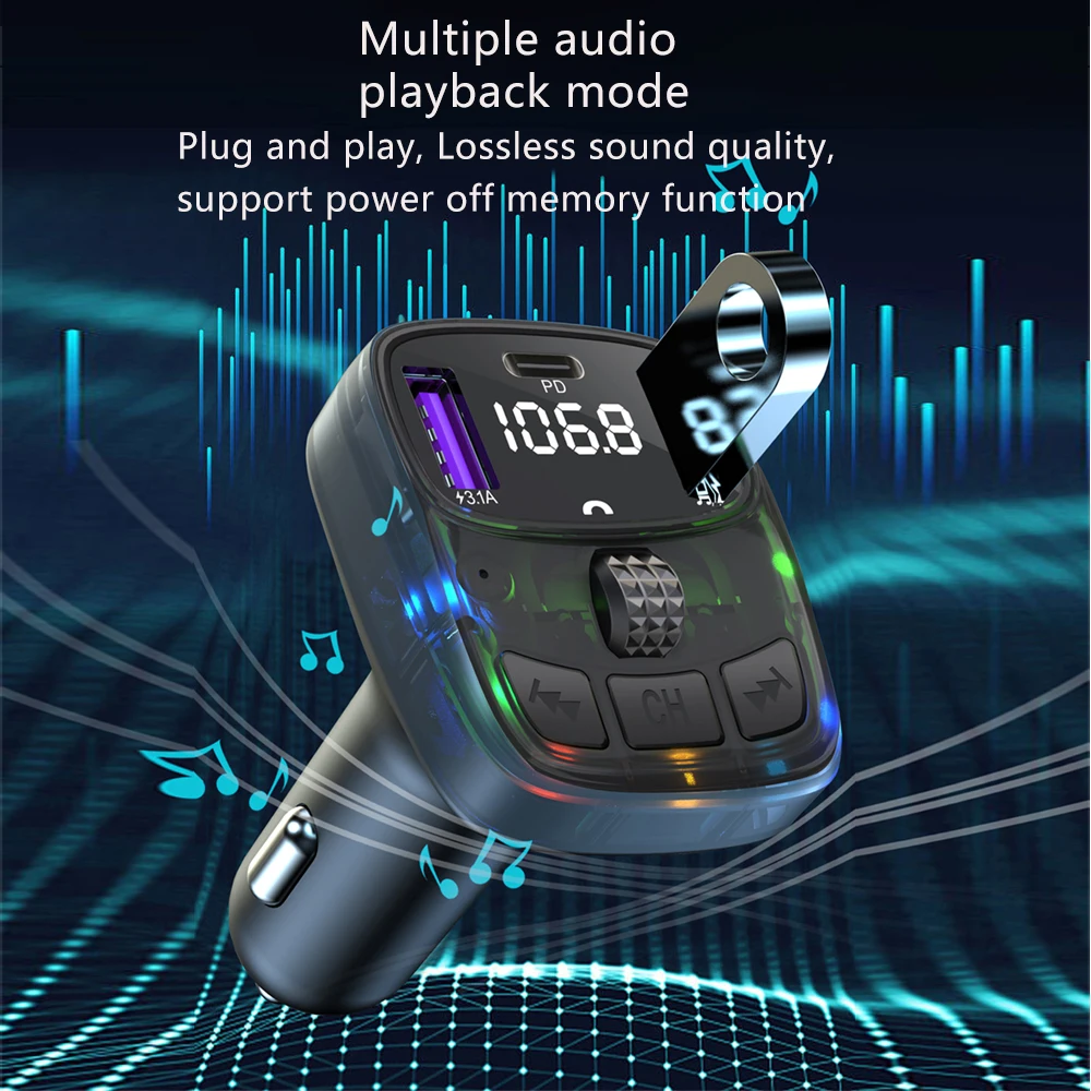 This product is a car MP3 FM transmitter, it uses a dedicated 5.3 high-performance Bluetooth module, built-in high-quality MP3/WAV decoder chip. It can wirelessly transfer the audio to the car radio system without refitting the car via FM transmission function for safety driving and high quality music enjoyment.