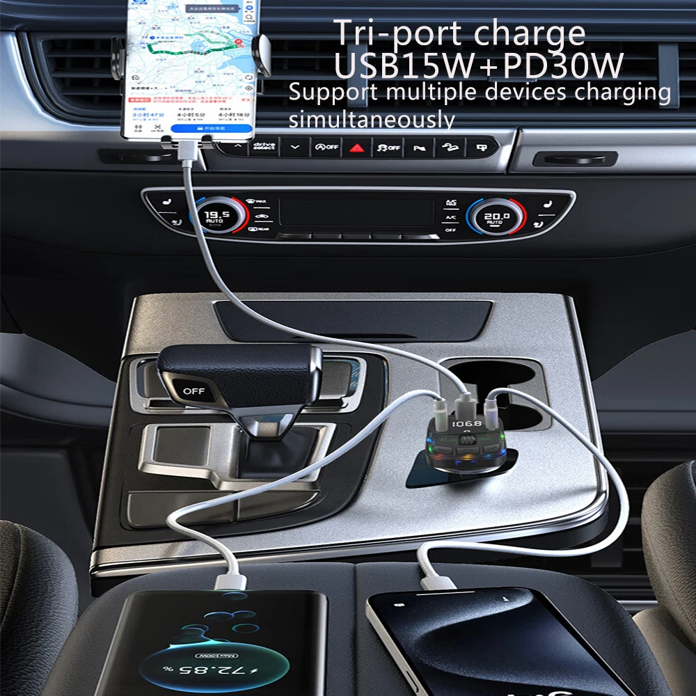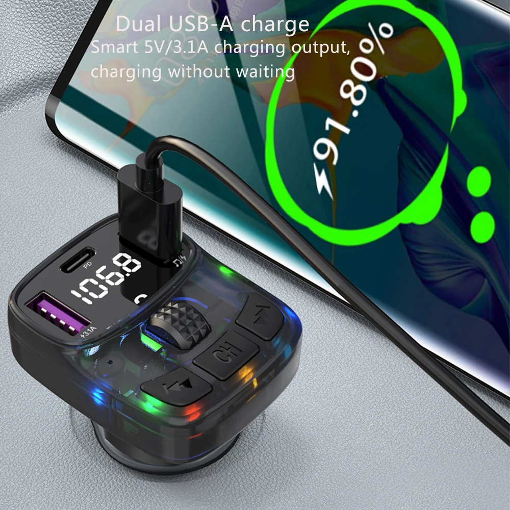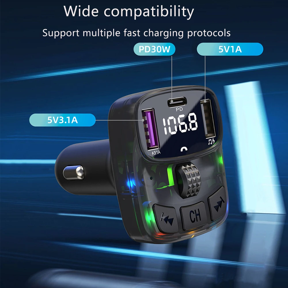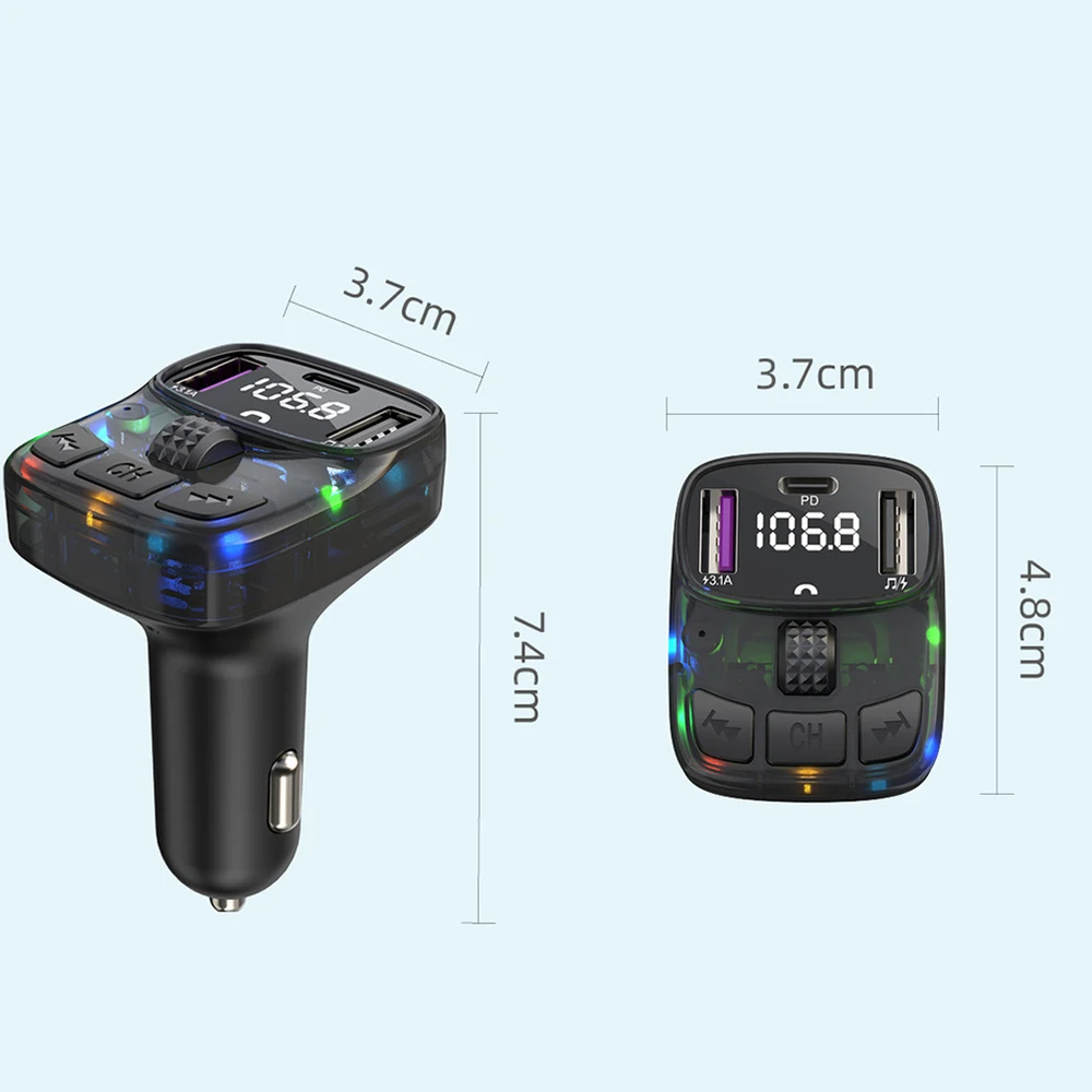 This product is a car MP3 FM transmitter, it uses a dedicated 5.3 high-performance Bluetooth module, built-in high-quality MP3/WAV decoder chip. It can wirelessly transfer the audio to the car radio system without refitting the car via FM transmission function for safety driving and high quality music enjoyment.